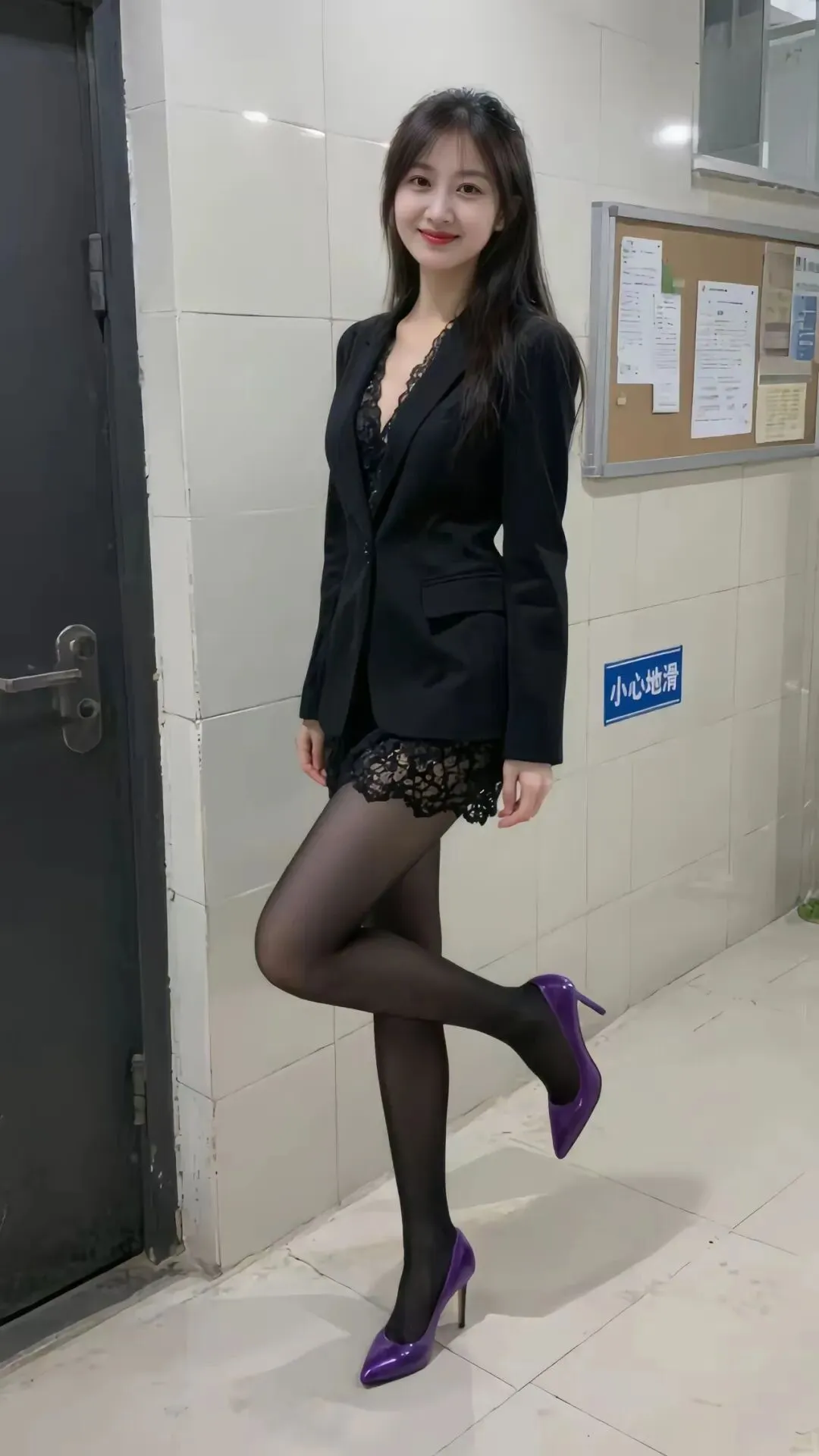 电梯镜面里,她胸前一朵小小的黄色花朵静静绽放,脚下那双紫色高跟鞋敲击地面的声音清脆利落。没有任何多余的言语,但整个狭小空间的气场已然被改写。