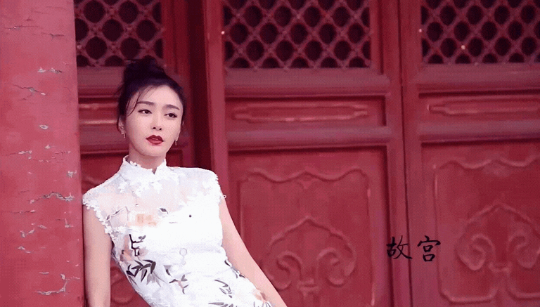 站在朱红宫墙下的她,一袭白衣胜雪,美似画中仙