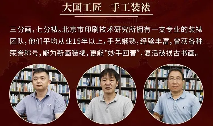 制作团队来自北京市印刷技术研究所,全都是平均从业15年以上的资深工匠,手艺娴熟、经验丰富。
