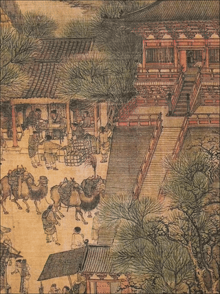 画卷尾声处,一支骆驼商队正走出城门,证明汴京与西域保持着贸易往来……