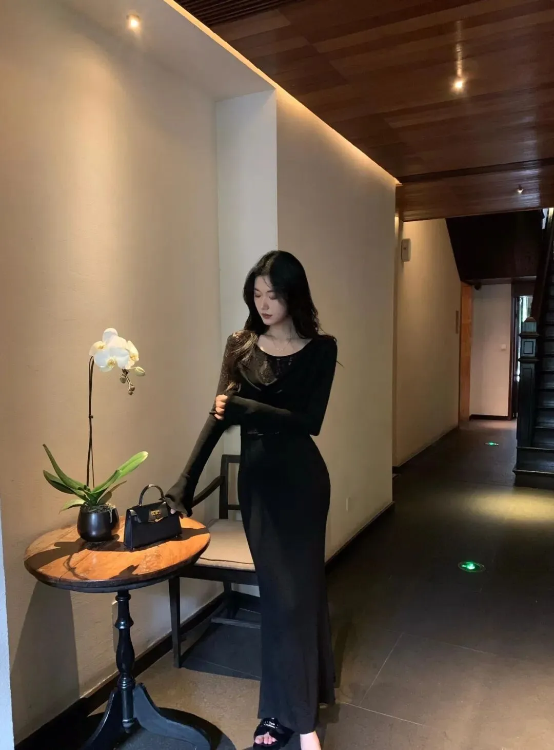 当前位置:首页>美女资讯>一条蕾丝挖空长裙,把暗黑优雅穿出氛围感
