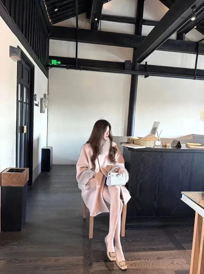 这个冬天,粉色悄悄惊艳了所有人!穿上这件大衣秒变韩剧女主角