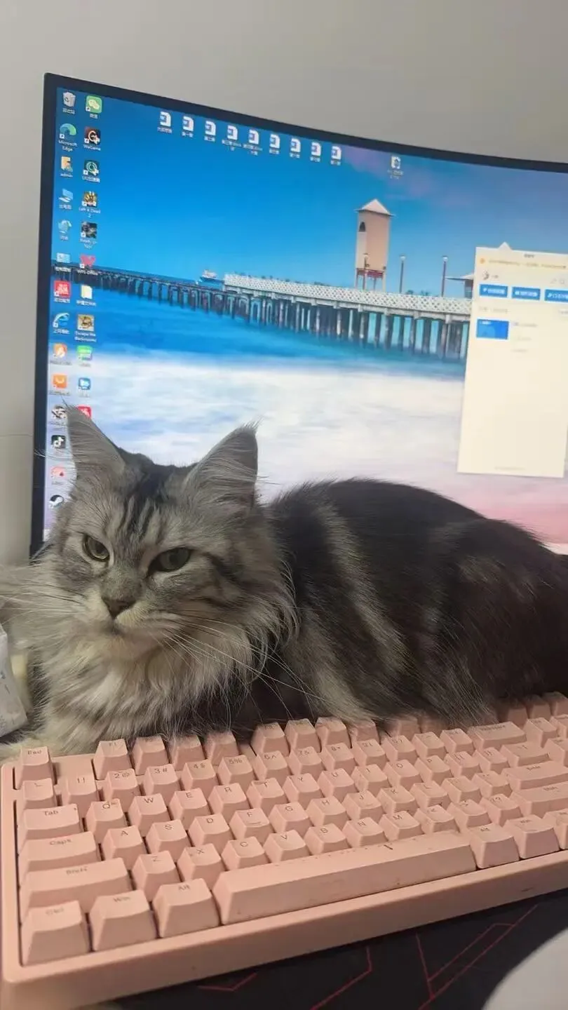 你们应该不知道我养了只猫,给你们看看,是只缅因,1岁多点。其实晚上直播的时候,她就在这里陪着我。