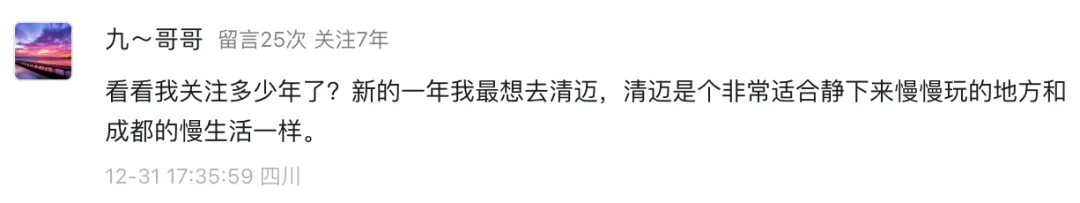 “新的一年我最想去清迈,清迈是个非常适合静下来慢慢玩的地方和成都的慢生活一样。”