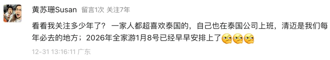 “一家人都超喜欢泰国的……2026年全家游1月8号已经早早安排上了😂😂😂”