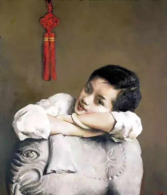 ▲画家笔下的周迅《红头绳》