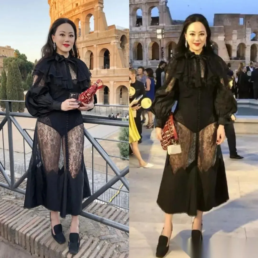 章小蕙在国外这么敢穿,一袭蕾丝裙显出尤物身材,完全没有大婶味