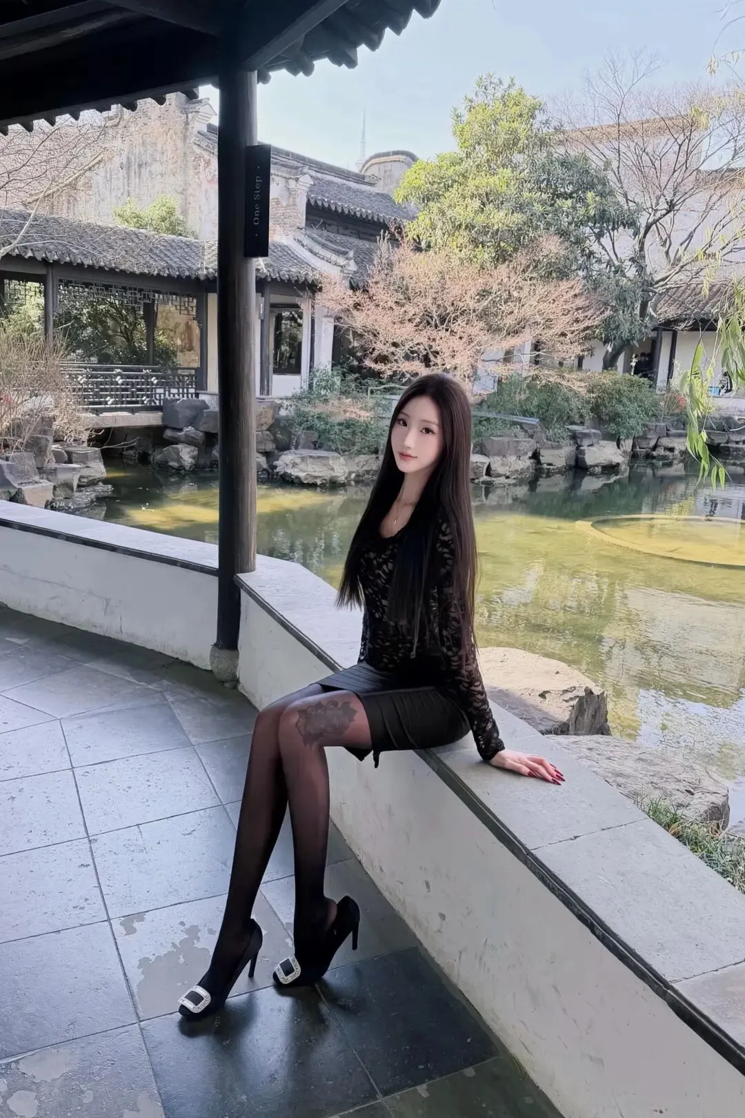 当前位置:首页>美女资讯>“黑蕾丝长袖裙+黑丝+方扣高跟”,清冷又妩媚,古韵与精致交织的时尚魅力