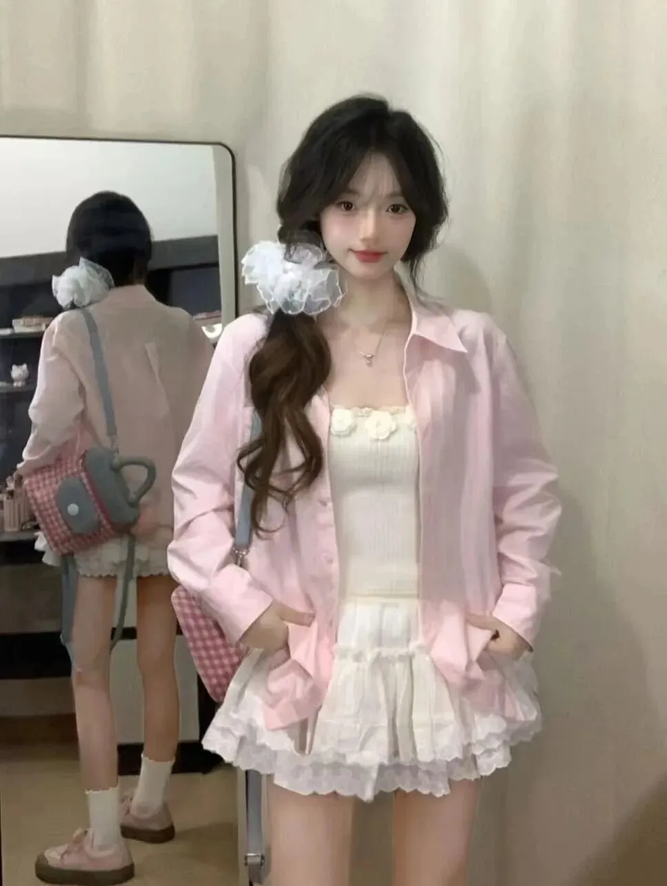 当前位置:首页>美女资讯>粉衬衫叠穿白蕾丝裙,甜但不腻的日常松弛感