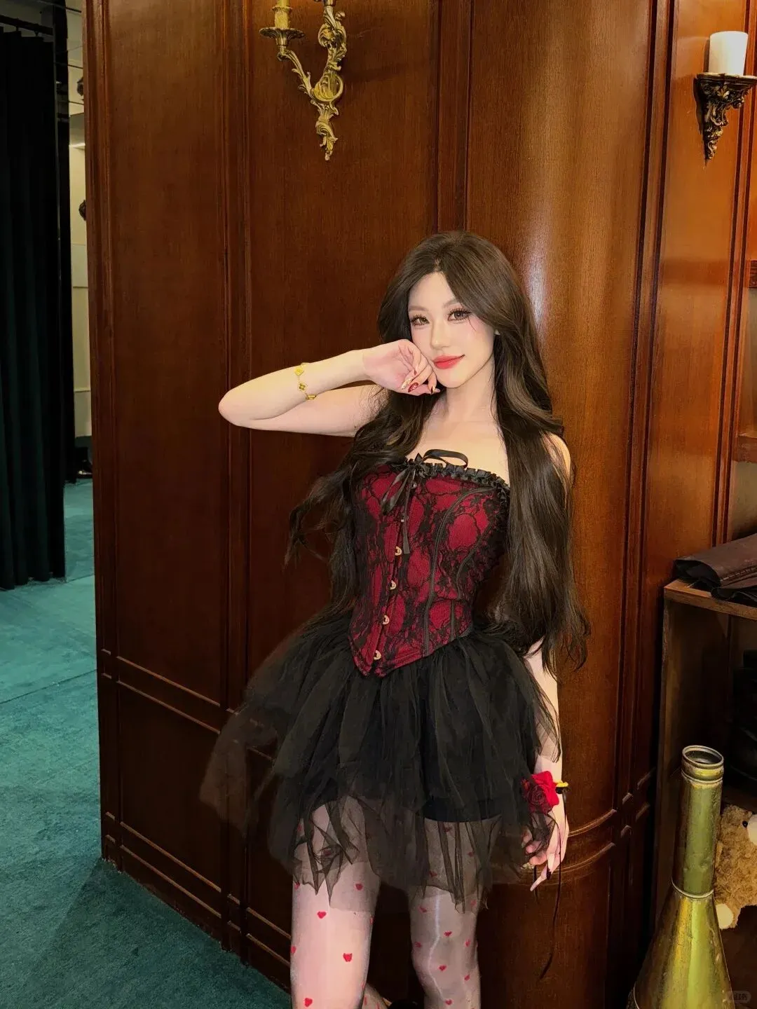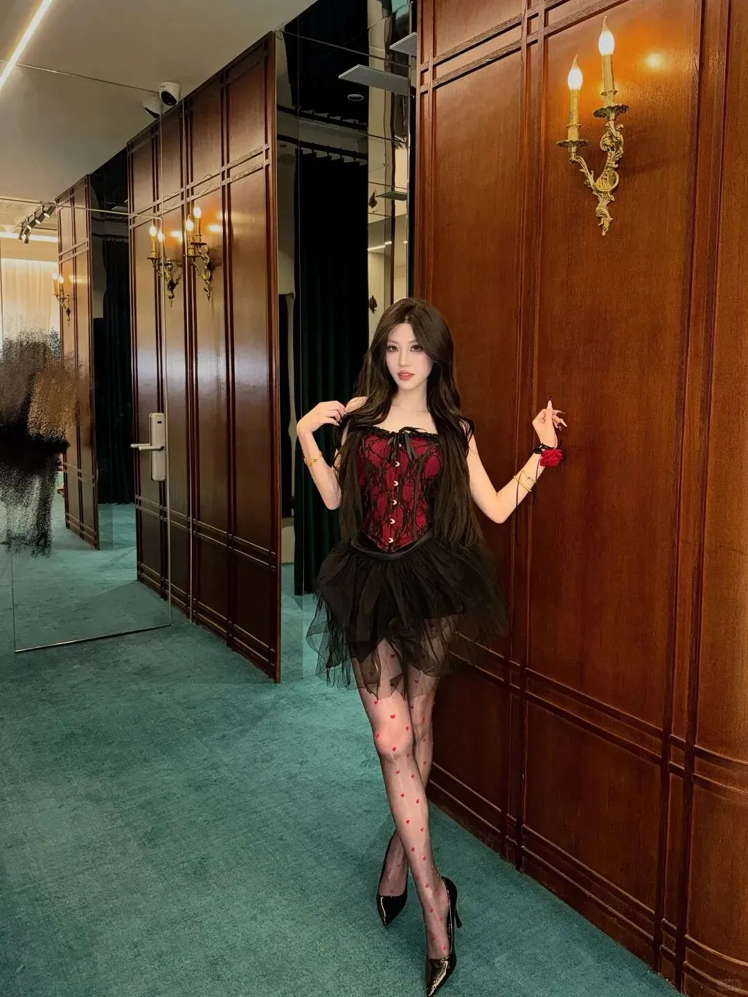 当前位置:首页>美女资讯>黑纱裙晃过镜影,红蕾丝裹着浪漫
