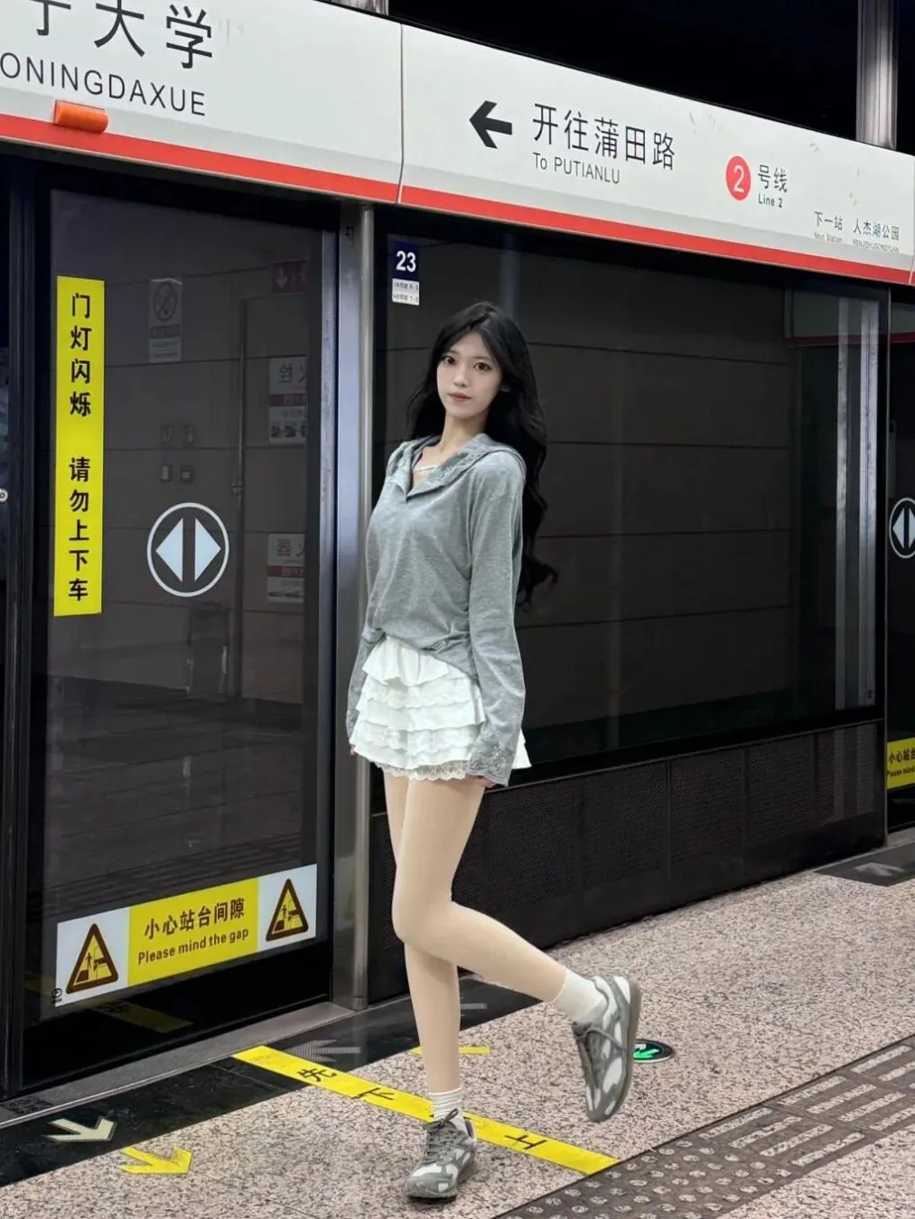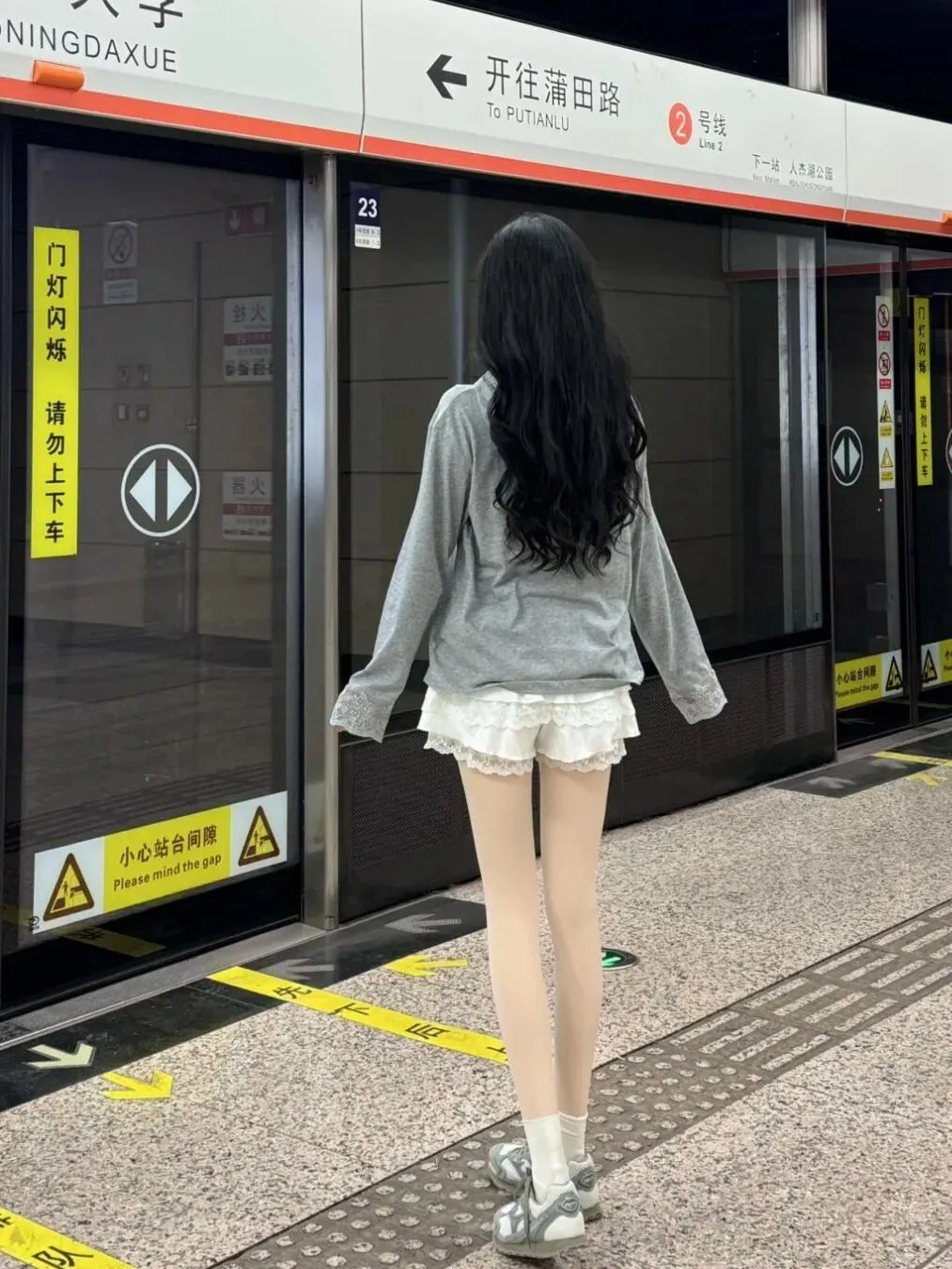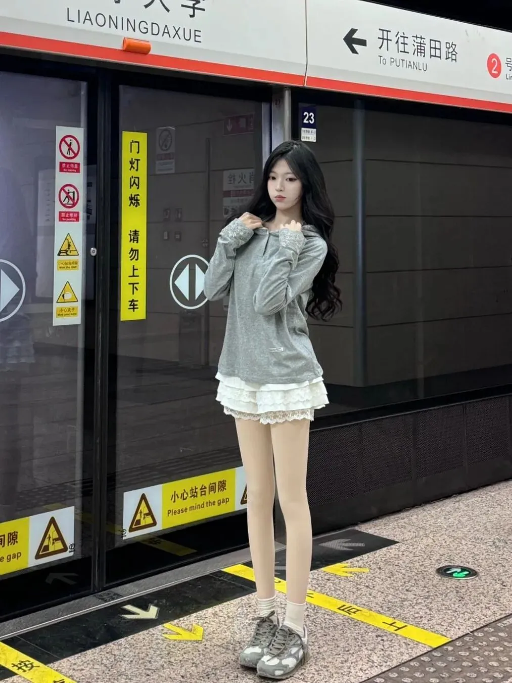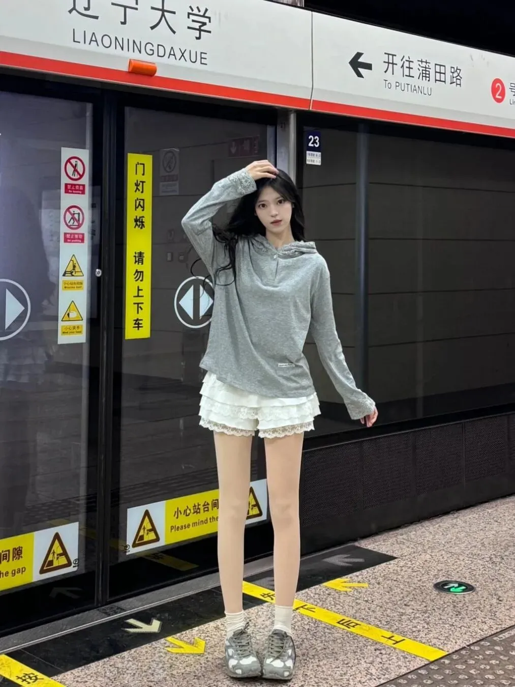 当前位置:首页>美女资讯>灰卫衣蕾丝短裤 地铁甜酷穿搭封神
