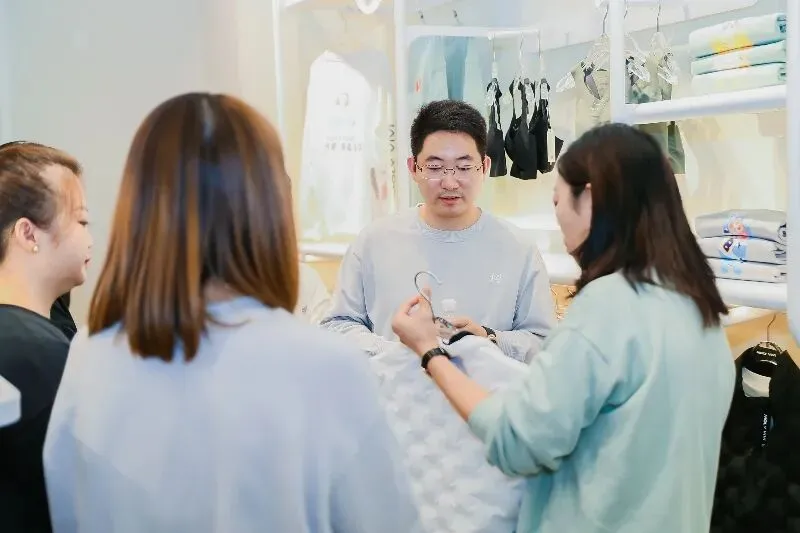 这一次,两人此前的积累全面汇聚:在电商运营上的方法论、在品牌建设上的理解,与在纺织品领域的研发技术相辅相成,形成强大合力。李健男说:“做女性运动服饰,相较服装设计专业,我们更懂材料、性能与配比。”这一专业优势很快转化为产品竞争力。例如,2024年销量超百万件的防晒衣,便利用经编织物比纬编更挺括、防晒指数更高的特性,打破了行业常规思路,脱颖而出。