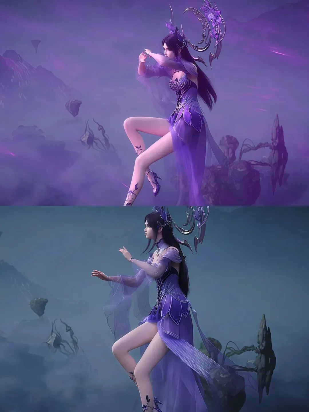那时的小医仙已经成了毒宗宗主“天毒女”,一身灰紫衣裙,眼神冰冷,周身毒气缭绕。她率领毒宗与炎盟对峙,战场上,两人遥遥相望。