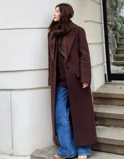 高圆圆冬日私服向来兼具温度与格调,且暗藏诸多时尚思路。即便是她最擅长的大衣穿搭,到了韩国也有了几分入乡随俗的意味。一袭深棕色长款大衣,内搭同色系服饰与牛仔裤,搭配棕白拼色运动鞋,整体造型本就简约大气