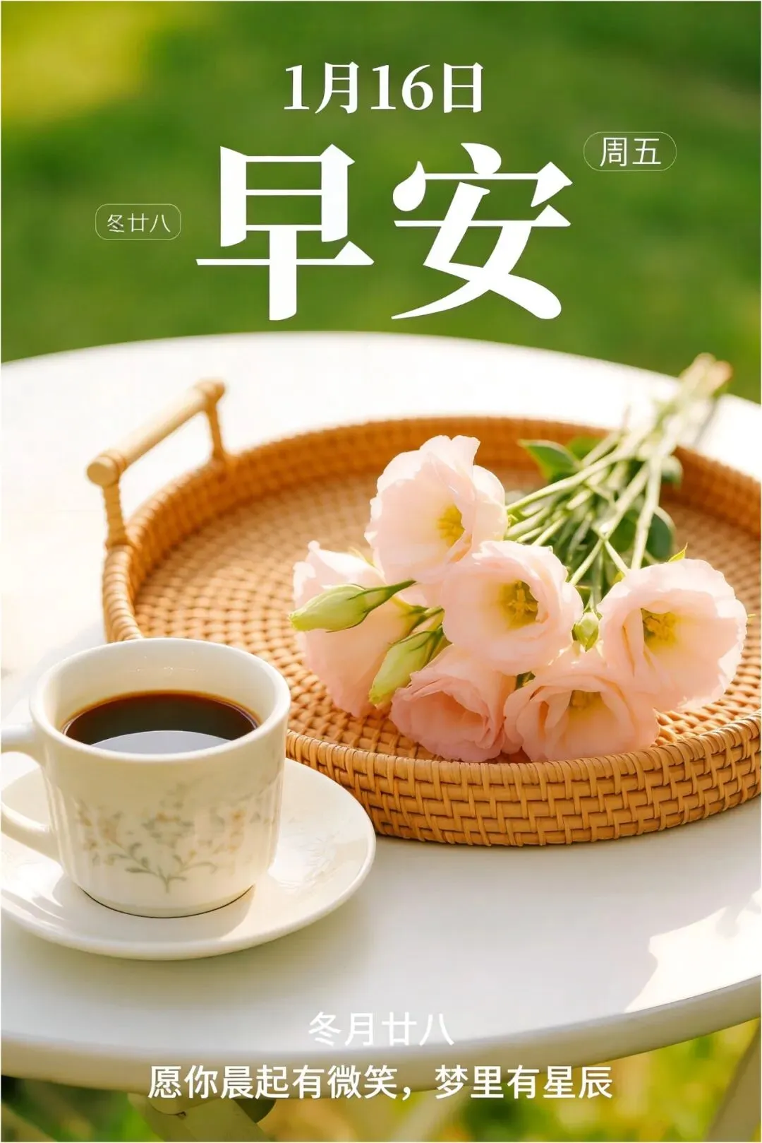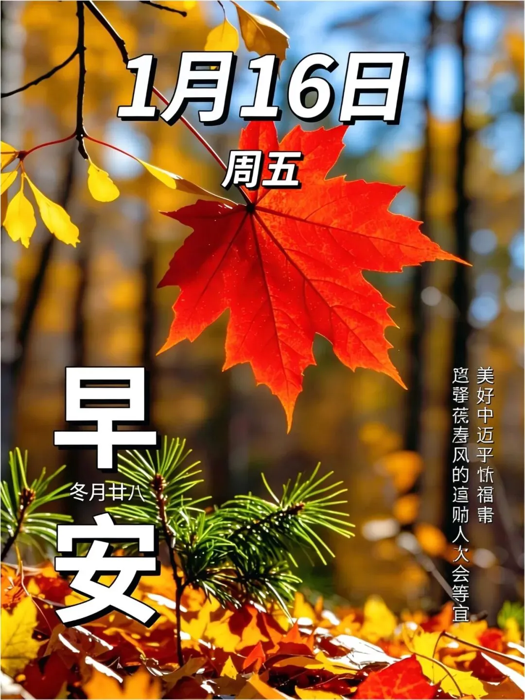 当前位置:首页>美女资讯>精选今日1月16日周五早安漂亮问候图片,拿走直接用