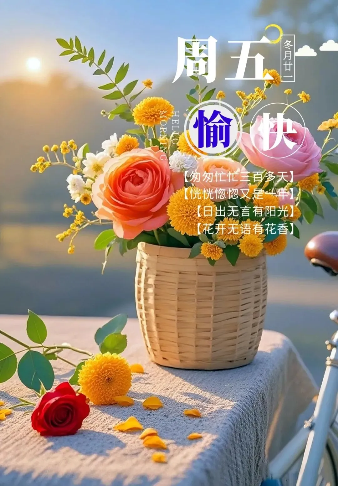 微风拂过发梢的瞬间🍃,捎来清晨的第一份问候👋,周五的阳光格外和煦,调整好心态轻装上阵,愿你工作得心应手,下班就能拥抱自由💖!