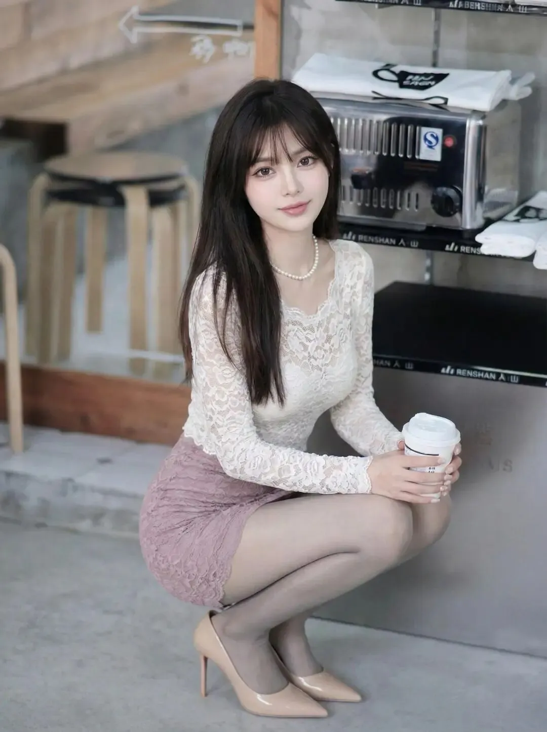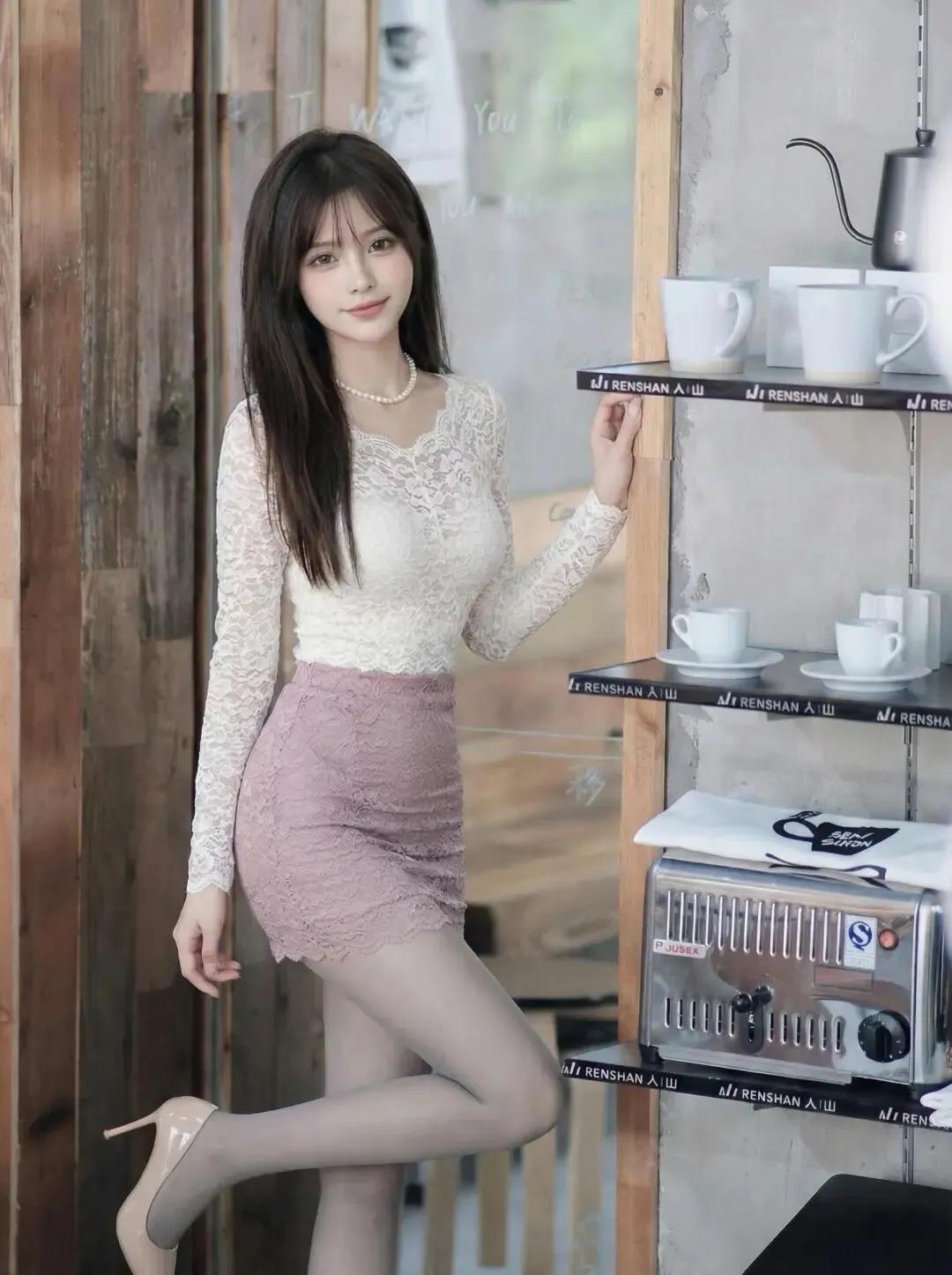 当前位置:首页>美女资讯>“白蕾丝上衣+粉蕾丝裙+透肤袜+高跟”,温柔甜媚,精致又浪漫