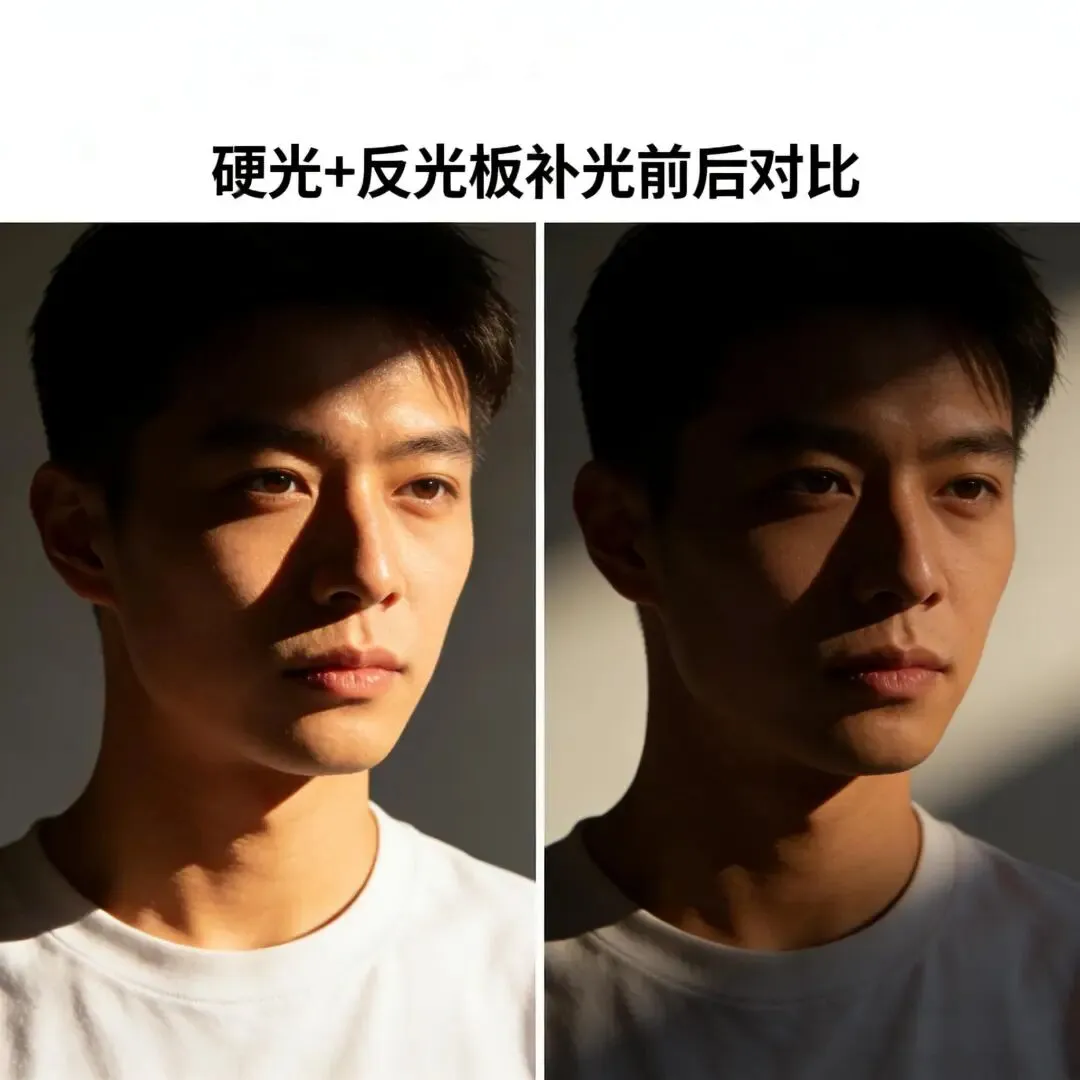 用法:适合打造个性、硬朗的人像风格(如硬汉风、时尚大片);拍摄时需注意避免脸部过强阴影,可借助反光板补亮暗部。