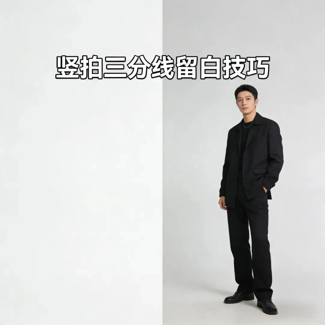 用法:在人物视线方向留出更多空间(如模特看向右侧,右侧留白更多),让画面更协调;留白部分可保留干净的背景(如天空、墙面),避免杂乱。