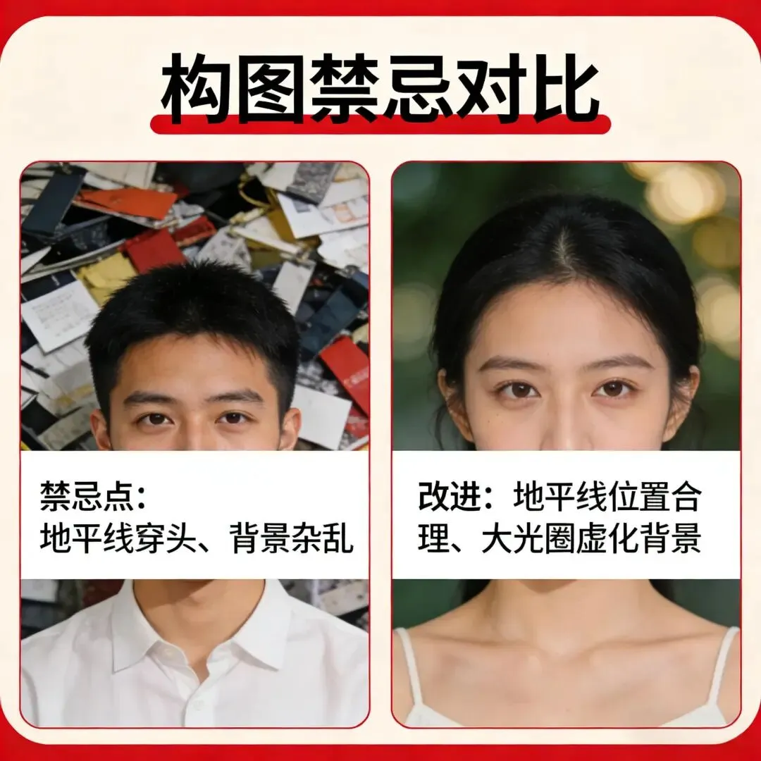 - 避免背景杂乱:尽量选择干净的背景(如纯色墙面、草地、天空),或用大光圈虚化背景,突出人物。