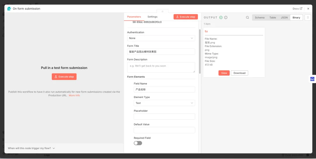 这是开始提供参数的一个节点,也是整个工作流的输入模块,所以说我们需要把人为提供的素材和内容都放到表单节点中。