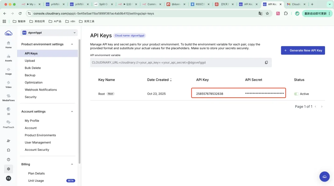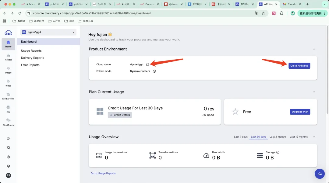 密钥凭证的获取网址:https://console.cloudinary.com/
