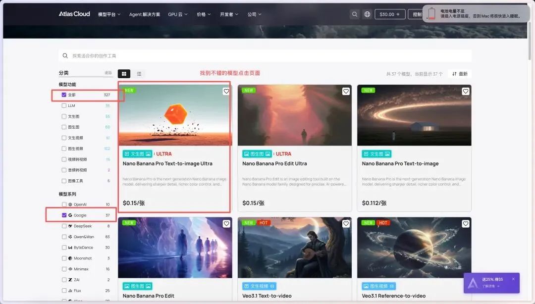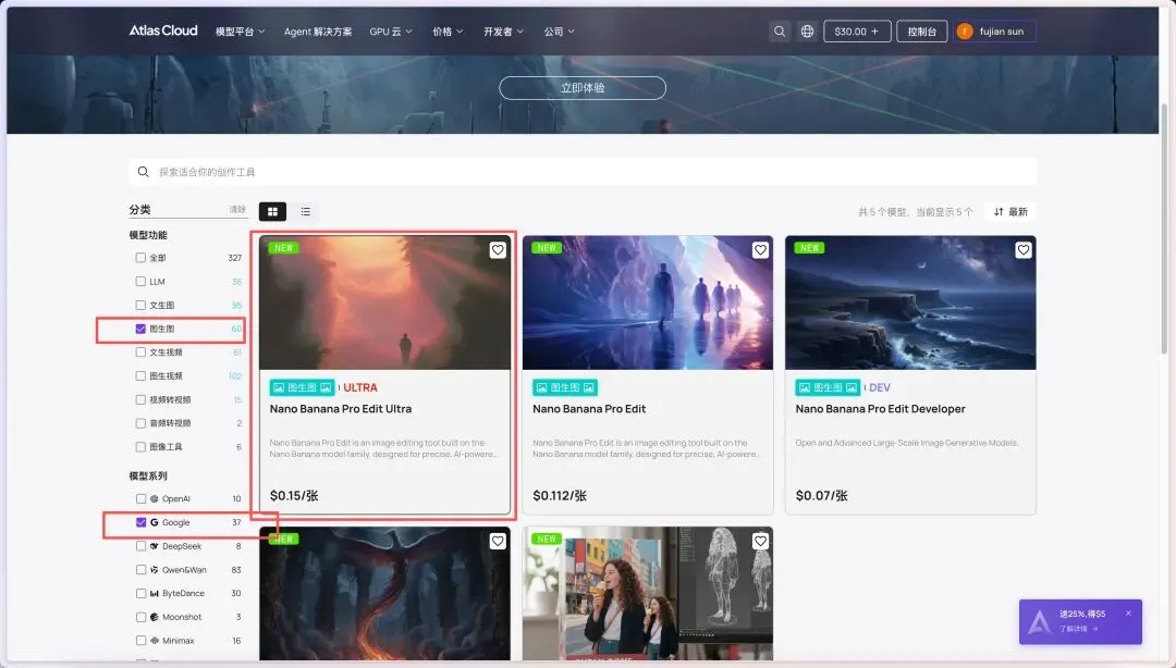 我目前用的是 Atlas Cloud,无论图片还是视频生成,都是我测试下来效果最好的平台。