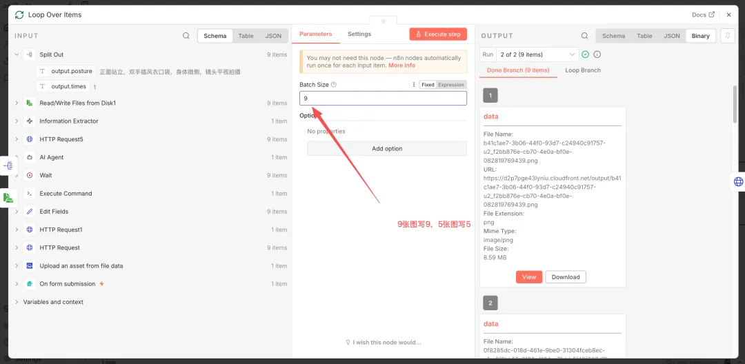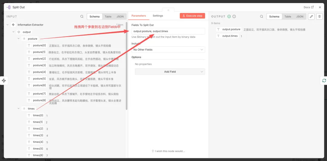 这两个节点没有什么好讲的,因为我们在N8N中想要循环批量处理,就必须要用到这两个节点一个呢是拆分节点拆分我们的数组