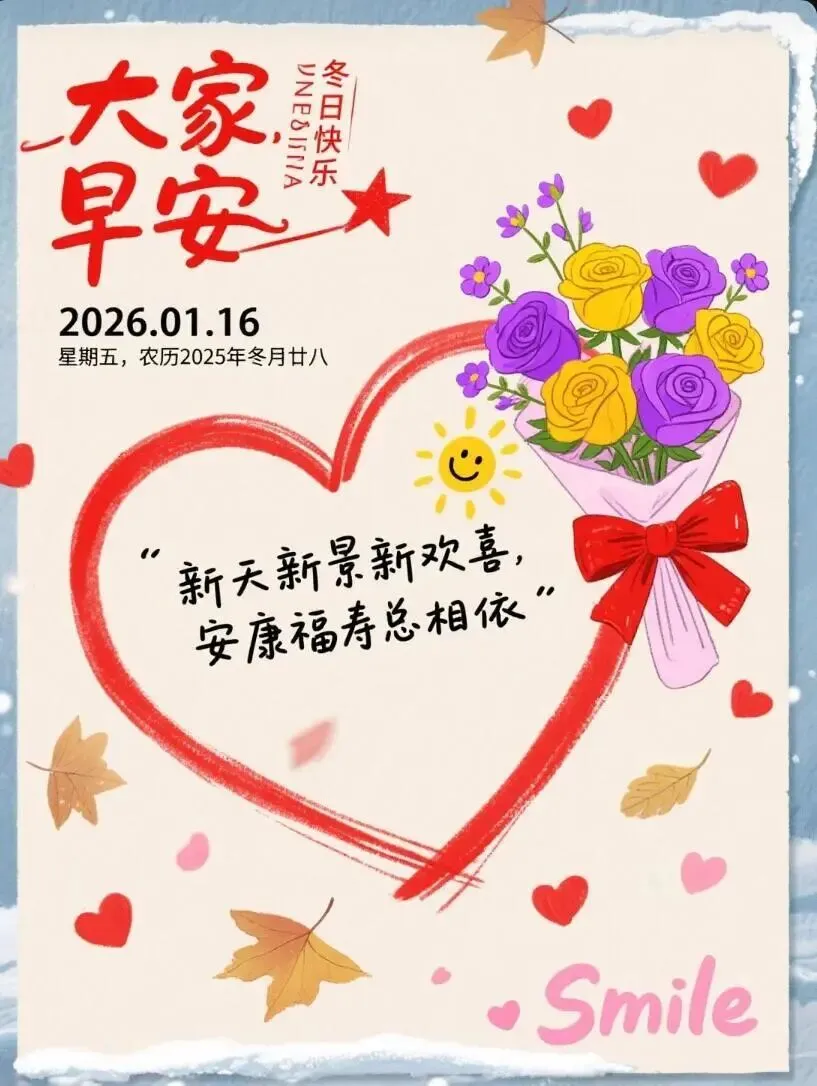 当前位置:首页>美女资讯>2026年1月16日早安图片带日期,周五祝福图片