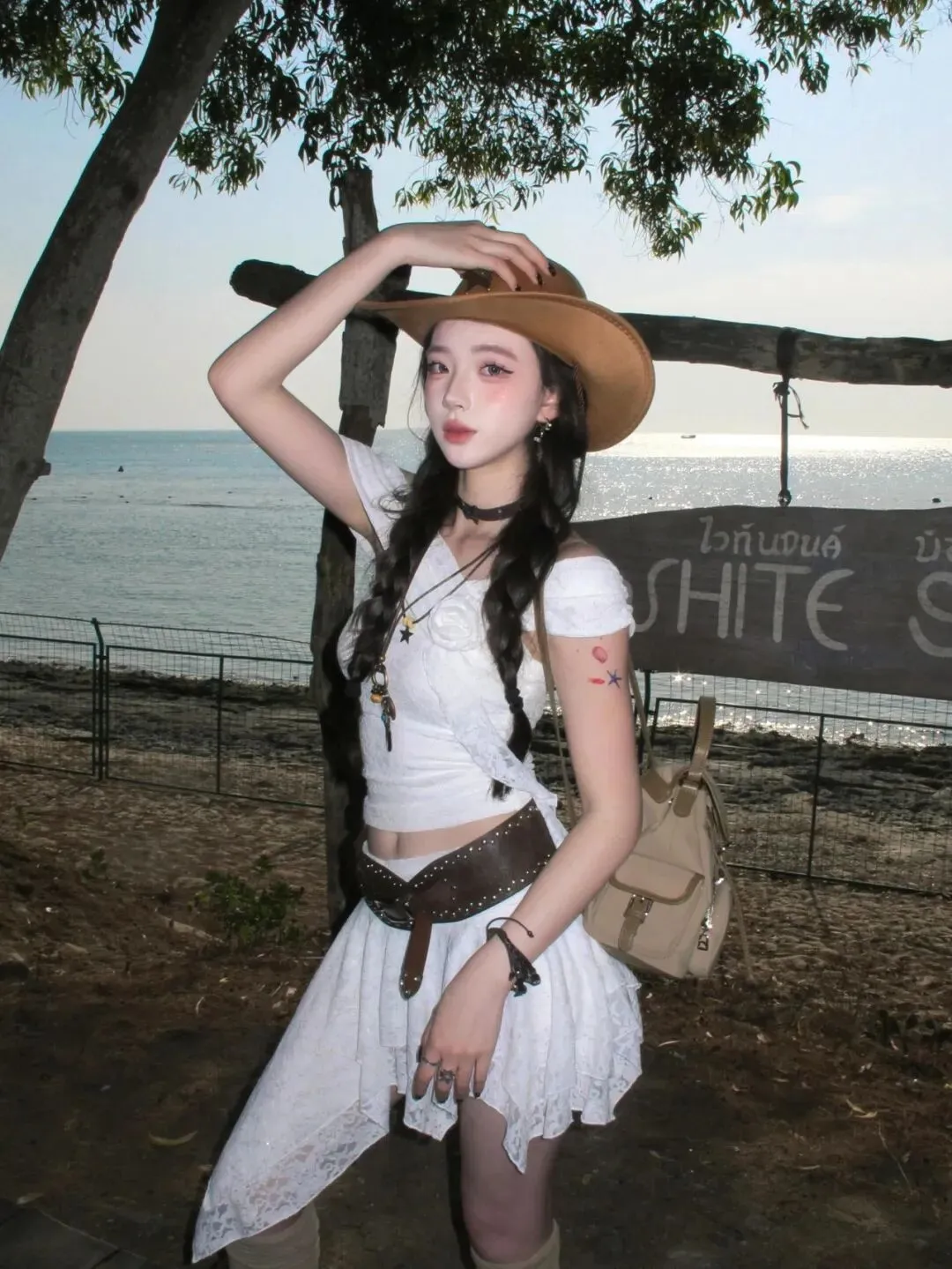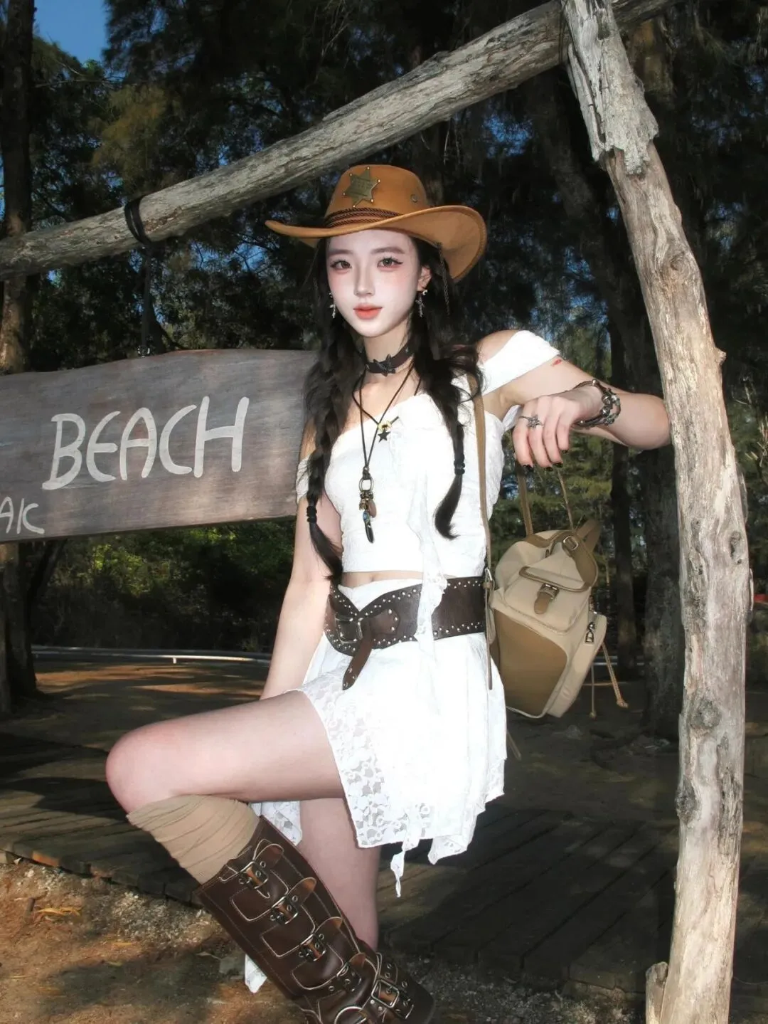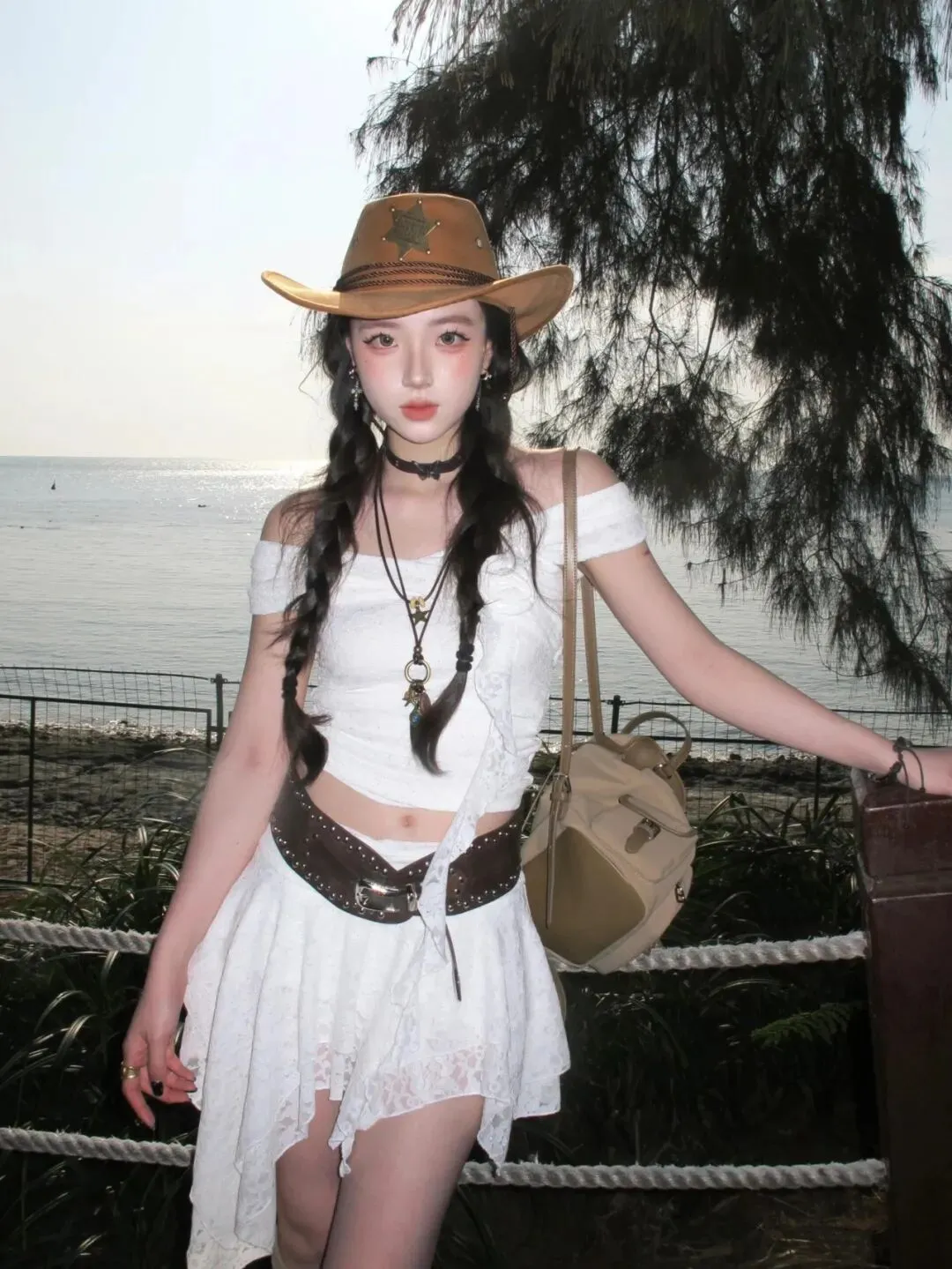 当前位置:首页>美女资讯>海边穿搭玩点不一样的!蕾丝套装加牛仔帽,甜酷风拿捏住了