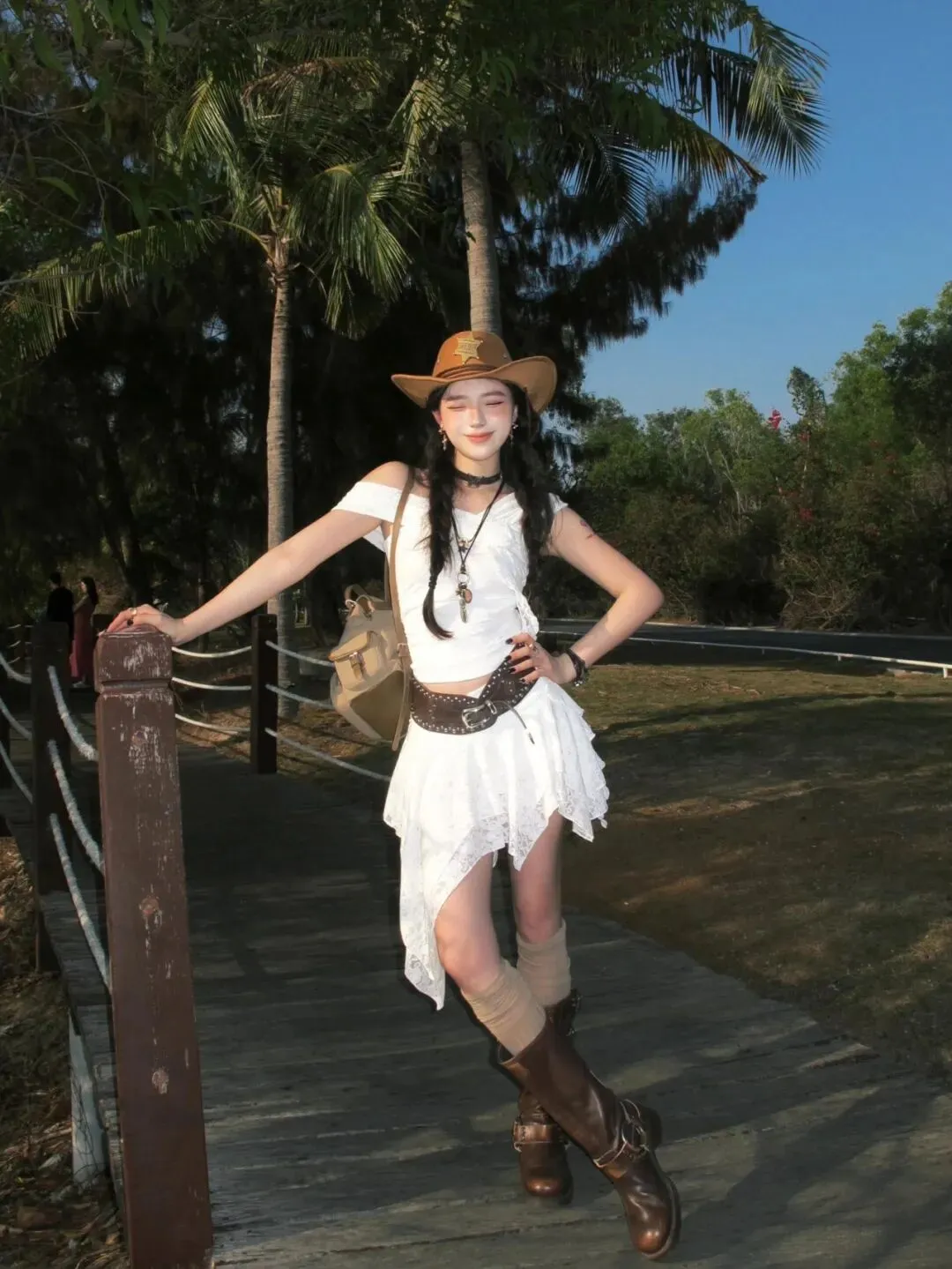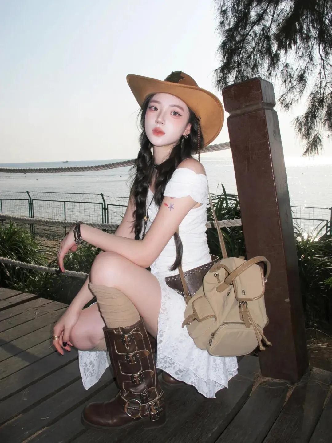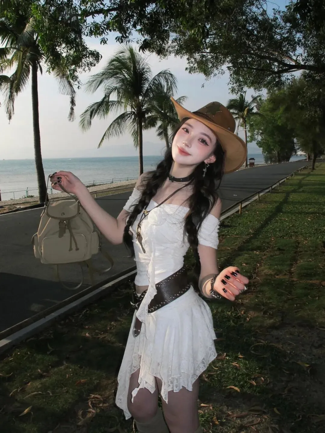 当前位置:首页>美女资讯>海边穿搭玩点不一样的!蕾丝套装加牛仔帽,甜酷风拿捏住了