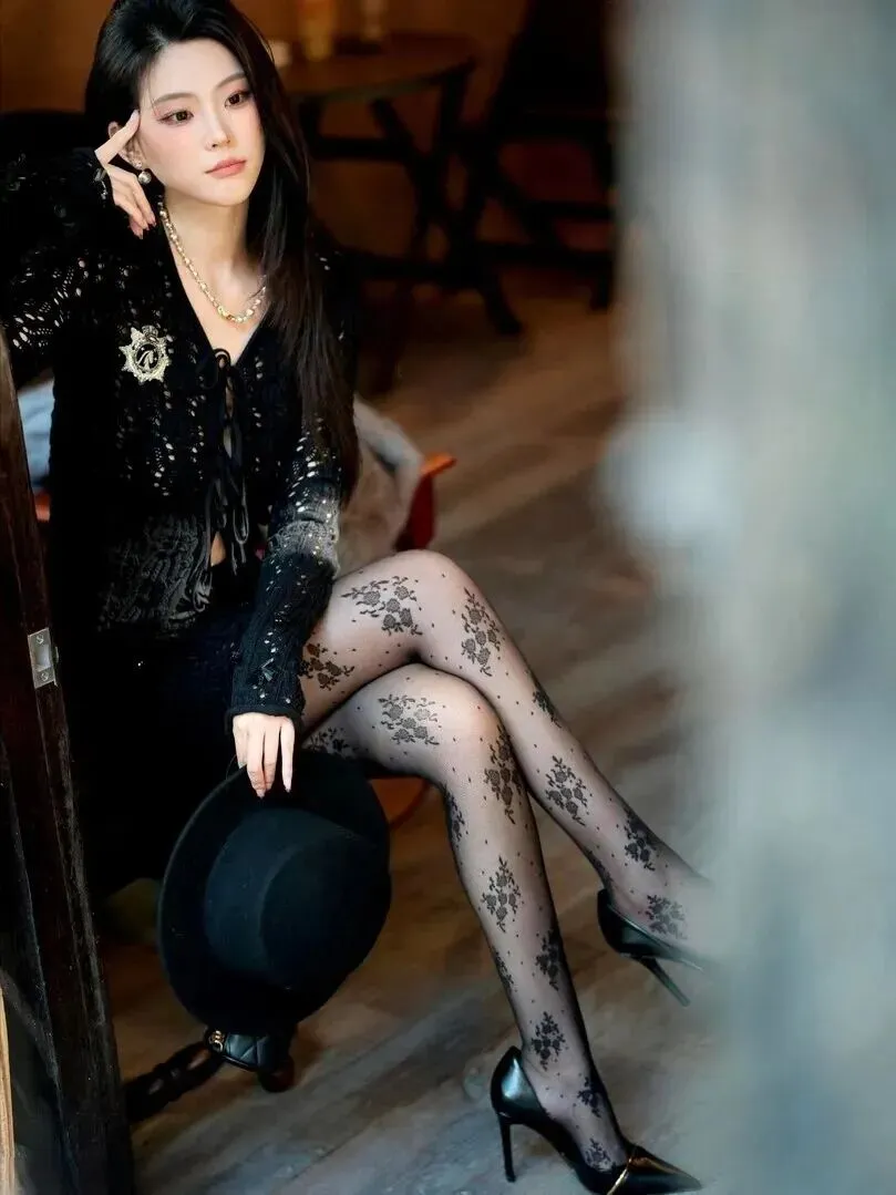 .身都是黑色.,需.要一点突破.。我搭配.了一双暗.纹波点丝袜.,圆点直径.都在5毫.米以.内,俏.皮但不.会太过。.走起路来,.裙摆偶.尔扬.起,露出.若隐若.现的.花纹,这种.不经.意的性.感比直接露.腿要.高级多了.