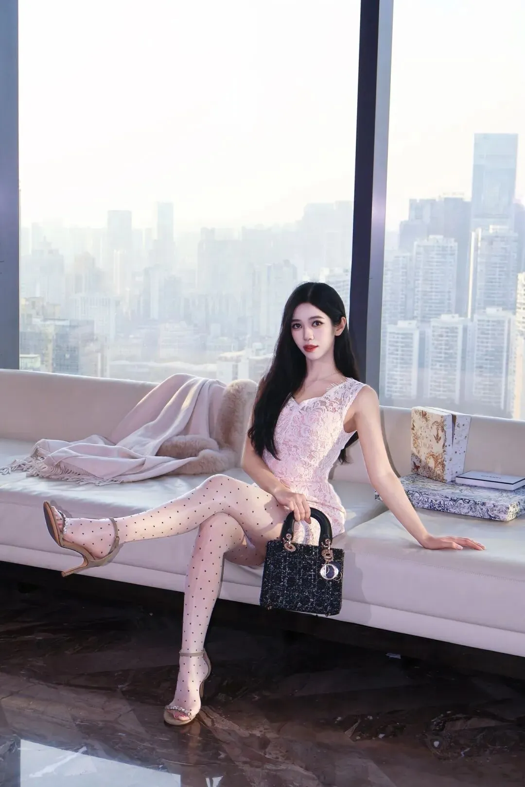 重点来了!点睛之笔就是这条波点丝袜!别再觉得丝袜是“土味”代表,选这种细密的小波点,复古又俏皮,瞬间打破浅粉蕾丝的甜腻感,多了几分灵动和小魅惑。黑丝波点自带显瘦buff,包裹着纤细的腿部线条,走路带风的时候,波点随着步伐轻轻晃动,又纯又欲的小心机直接拉满。