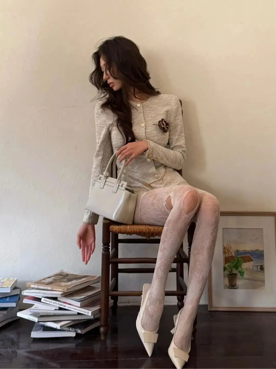 当前位置:首页>美女资讯>蕾丝破洞袜+小香风外套,小众搭配的小心机