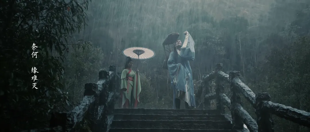 大雨中,举着一把伞,悄无声息出现在落魄书生背后。