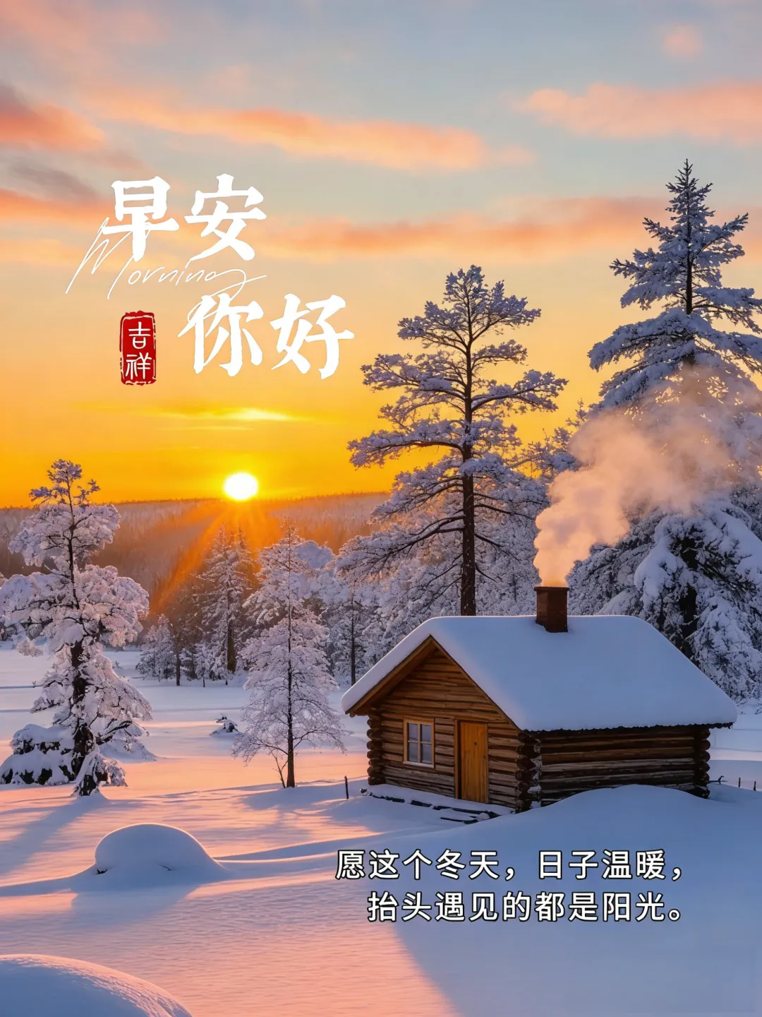 2026年1月17日周六早安祝福图片,雪落无声,悄悄把人间的喧嚣都藏了起来
