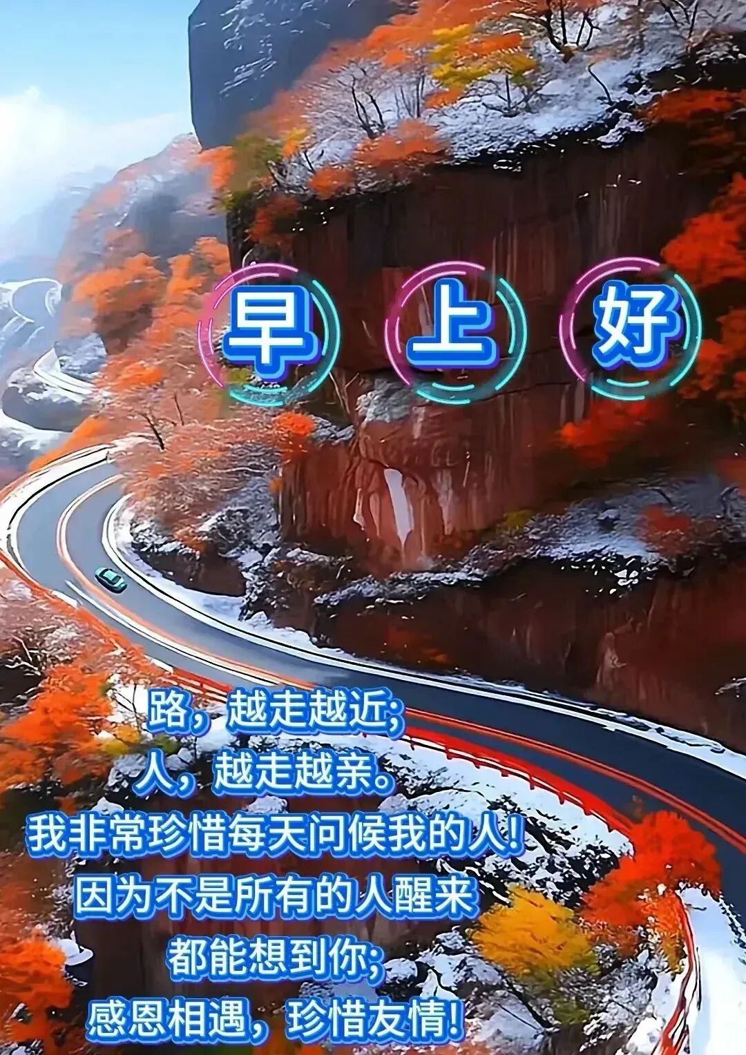 风儿是调皮的画家,用晨雾当颜料,在天空的画布上涂出淡蓝;阳光是金色的笔,在叶尖上画出露珠;鸟鸣是音符,在枝桠间谱出旋律——早安,愿这画,比秋日的枫叶更醉人。