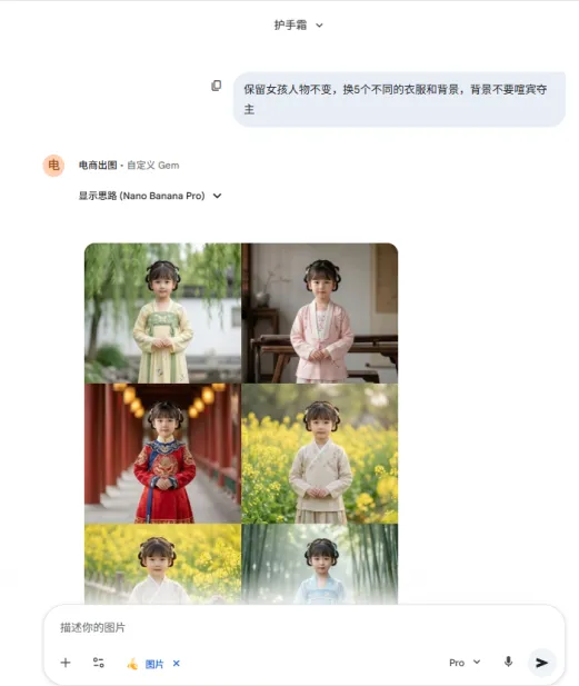 注:保持人物服装不变,AI几秒生成5种不同造型,效率是人工的百倍。