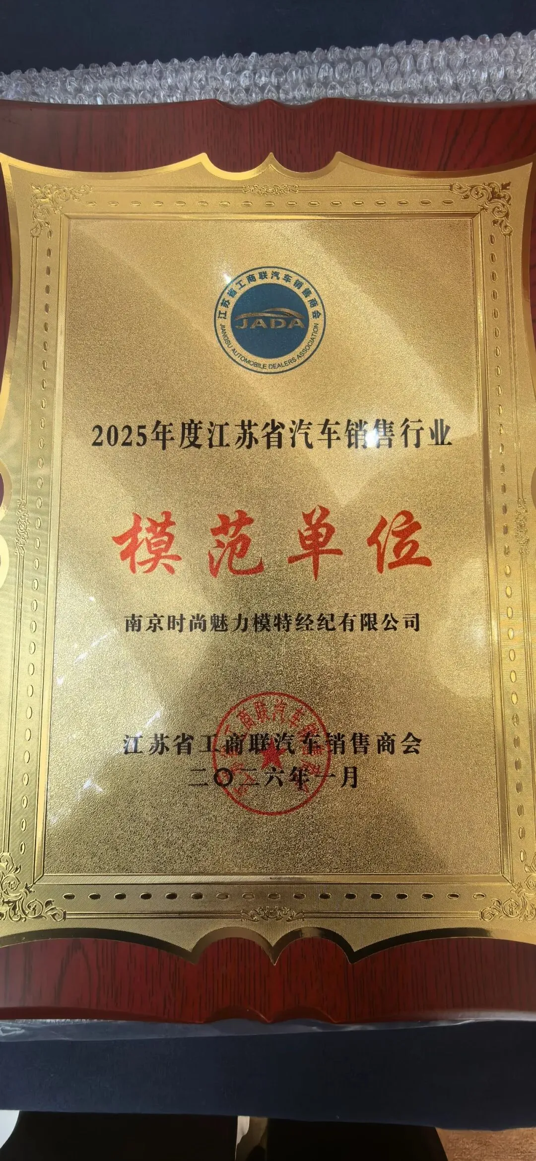 当前,汽车市场面临着前所未有的考验,为分析探讨我省汽车产业发展趋势,交流行业经验,2026江苏汽车发展大会暨江苏省工商联汽车销售商会年会”115日在白宫汉爵大酒店隆重举行,本次会议旨在为我省汽车行业解读政策、交流经验、褒扬先进。FGMD国际超模学院(南京时尚魅力模特)获得“模范单位”,20年来为每年的南京车展贡献了无数的车模,也是为中国汽车��行业作出了服务与贡献!