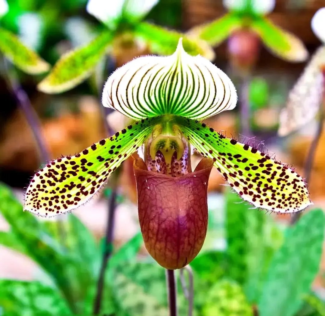 兜兰是兰科兜兰属的多年生草本植物兜兰的属名Paphiopedilum”意为“女神之履”。在古希腊传说中,女神阿佛洛狄忒为躲避凡人追逐,在山林间奔逃时失落了一只金拖鞋。这只落入凡尘的仙履沾染了大地灵气,化作第一株兜兰,从此在幽谷中代代盛开。