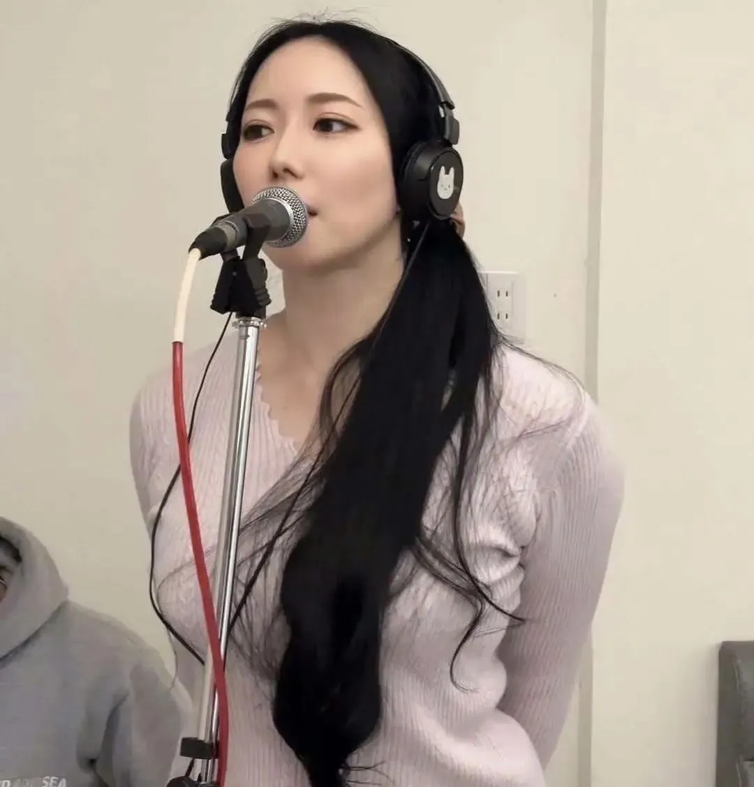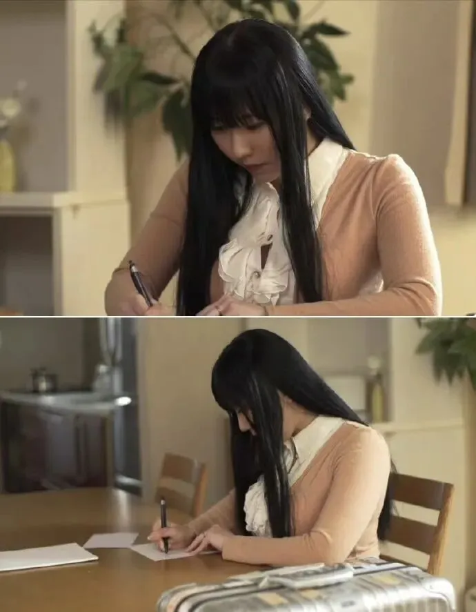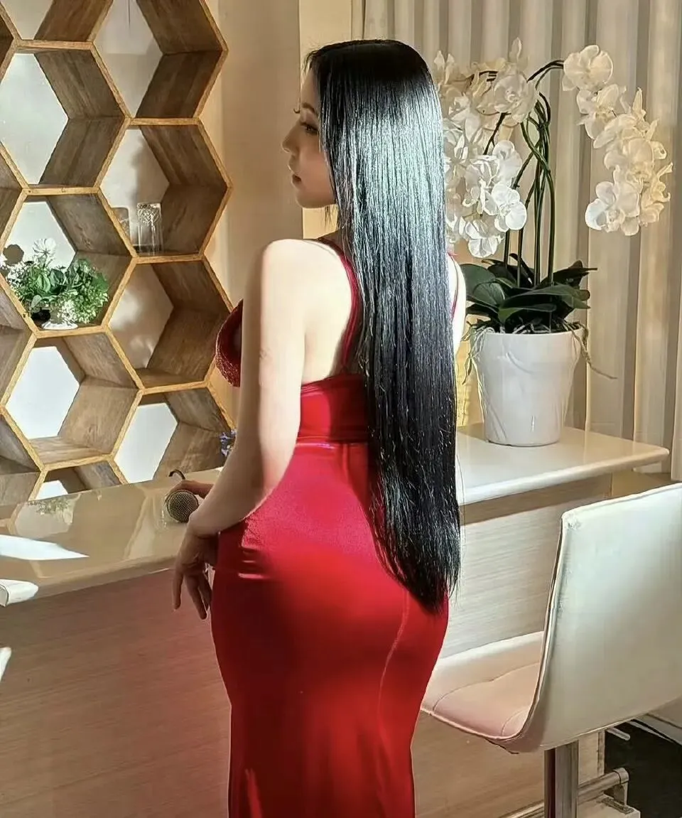 一头黑长直的头发,极具标志性。