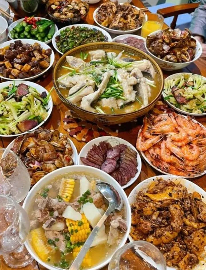 时光过得真快,转眼就到了开饭时分。餐桌上摆满了佳肴,炖得软烂的鸡、鲜香的排骨、肥美的海鲜,还有我最爱的新炒辣椒,每一道菜都承载着家人的心意。一家人围坐成一圈,酒杯轻碰,闲话家常,句句问寒问暖,满是拆不散的亲情。