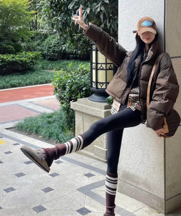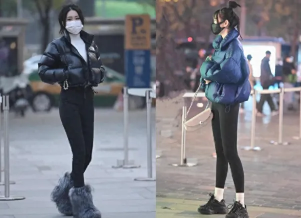 哈尔滨街头火了一种穿法,叫作“面包服+瑜伽裤”,时髦又显瘦