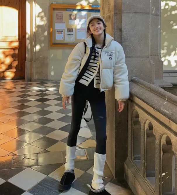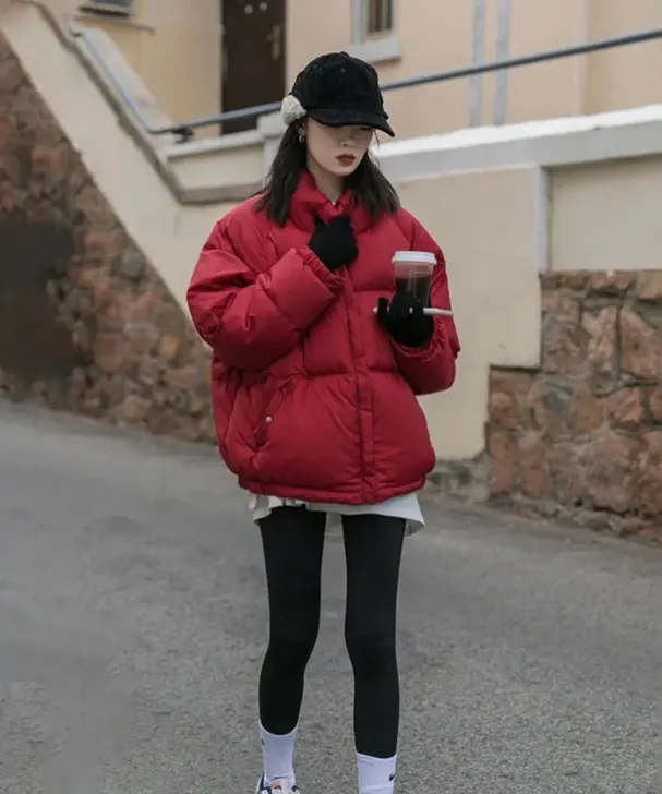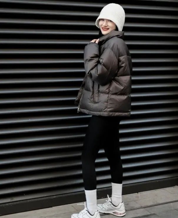 时髦洋气,赚足回头率。面包服本身比普通羽绒服更有设计感,搭配紧身瑜伽裤,整体造型轻松吸睛,出门走在街上回头率满分。这个组合让你既保暖又不失时髦感,随时能成为街头焦点。