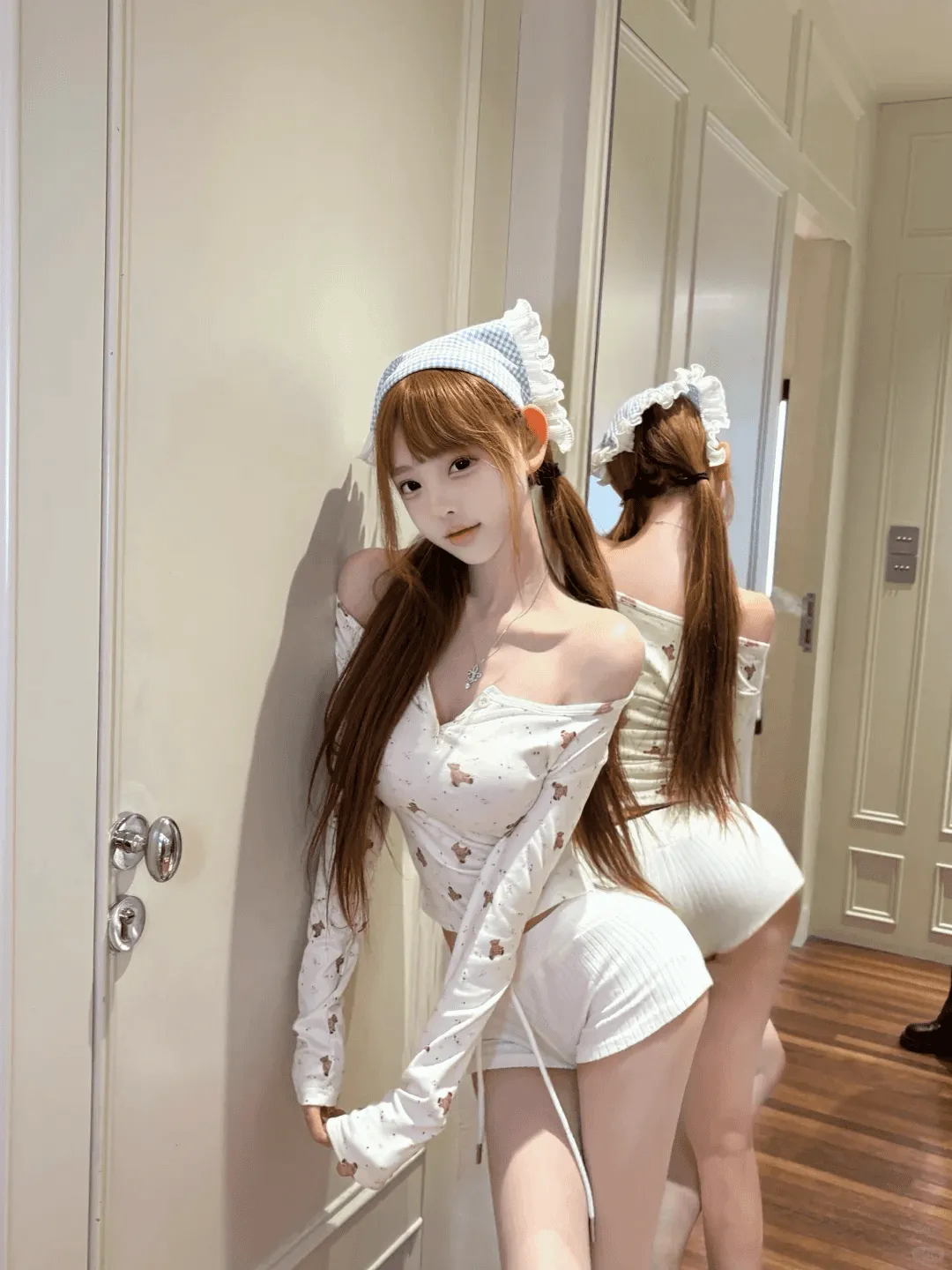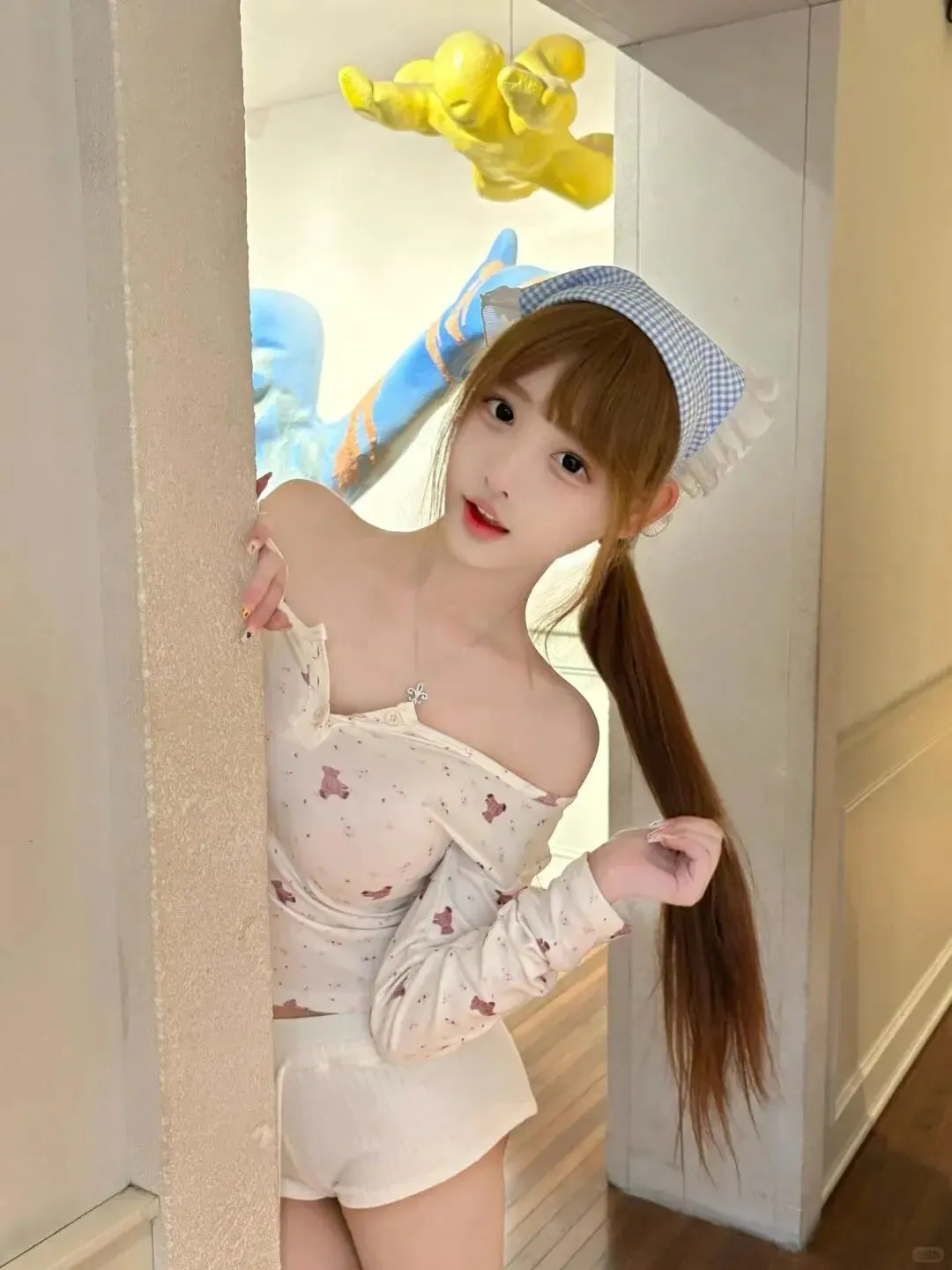 周末在楼下书店闲逛,随手拿起一本封面印着“倾颜少女”的写真集,指尖刚碰到纸页就顿住了——封面上的女孩穿着鹅黄色吊带裙,坐在白色阳台椅上,阳光洒在她海藻般的长发上,侧脸的弧度像被上帝精心雕刻过,小鹿般的眼睛弯成月牙,锁骨处的小痣若隐若现。翻到内页,我呼吸一滞:照片里的客厅沙发、落地窗阳台,甚至墙上挂着的那幅抽象画,都和我家一模一样!她穿着白色蕾丝睡裙趴在沙发上,露出纤细的腰肢和笔直的长腿,胸型在薄纱下若隐若现,看得我心跳加速,差点以为这是有人潜入我家拍的写真。