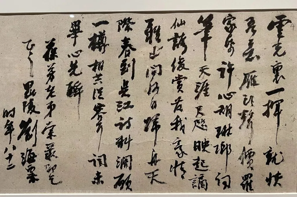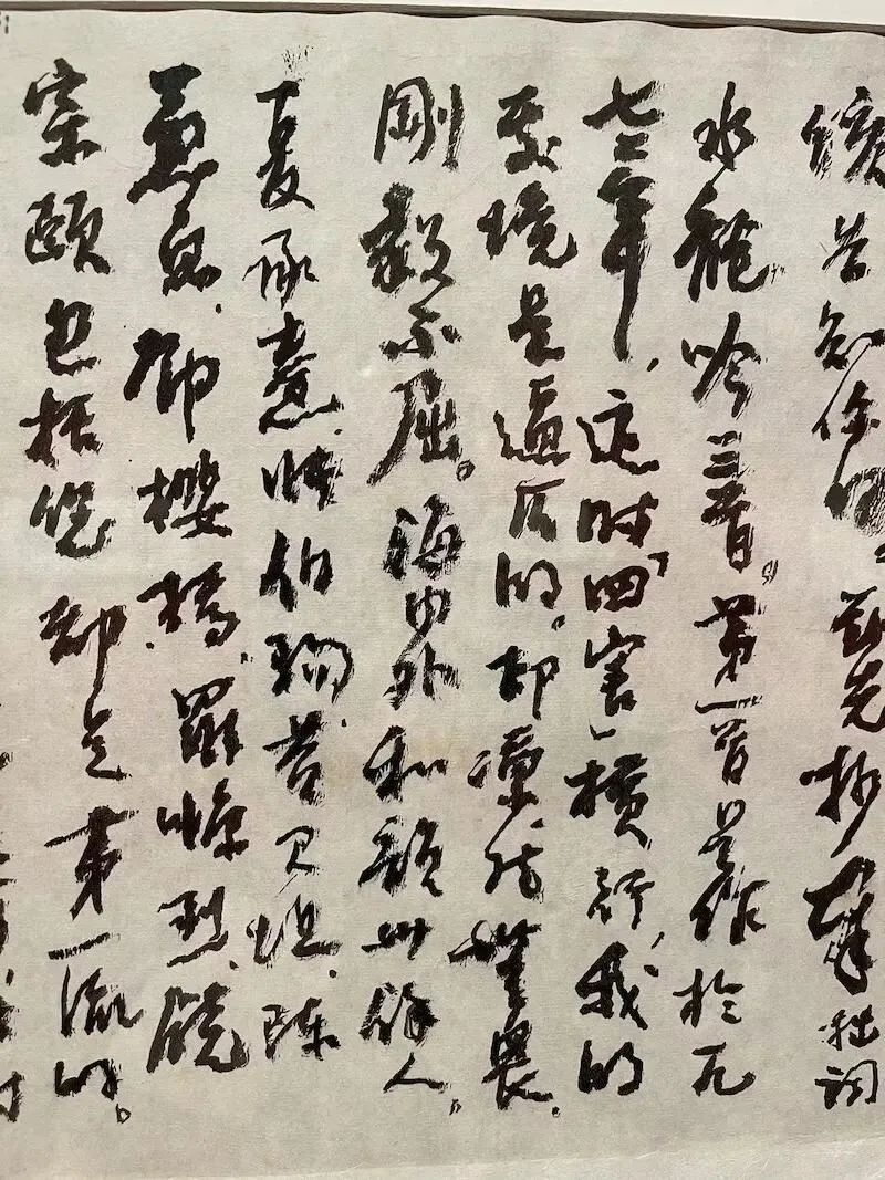 通过多次临习散氏盘等铭文,借鉴那样一种奇古生动,朴厚又见出纵逸之势的字体,融注于笔端,化其六七十年书法求索,又受此前临习东坡《寒食帖》等帖书的超逸旷达影响,遂将浩劫期间的胸中郁结孤愤处,以蜿蜒之笔、枯涩之意注入行草之中,并最终成就了其真正的人书俱老。