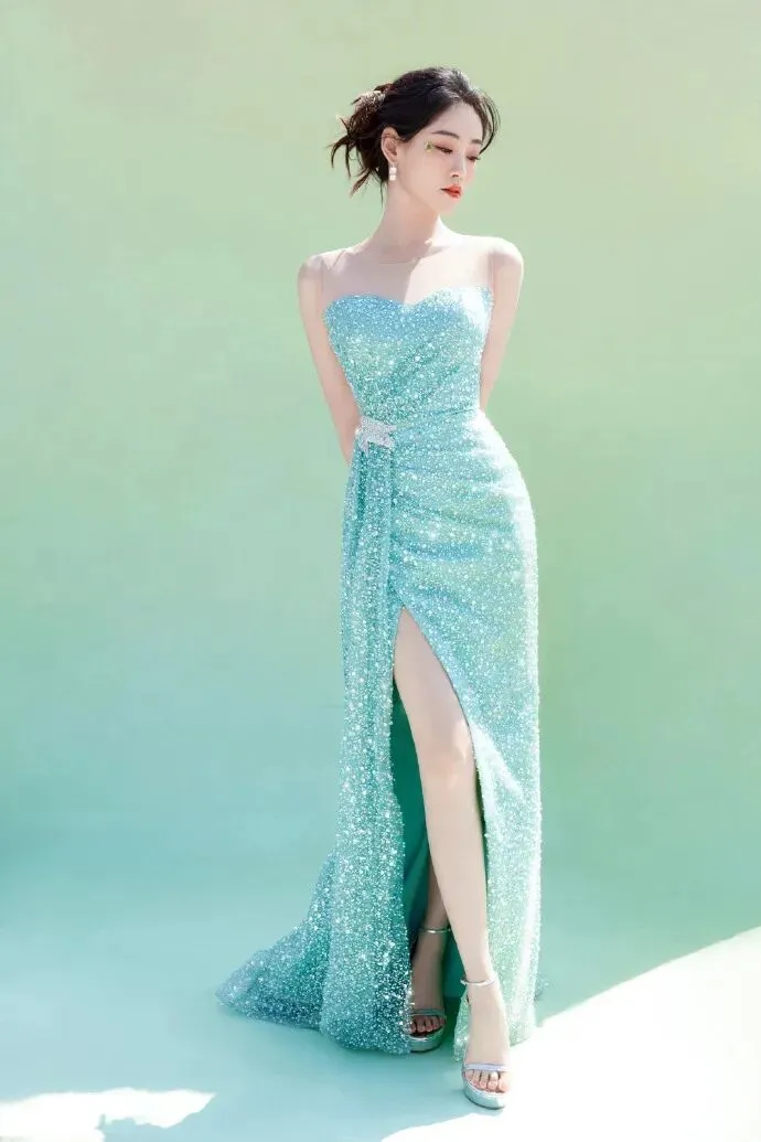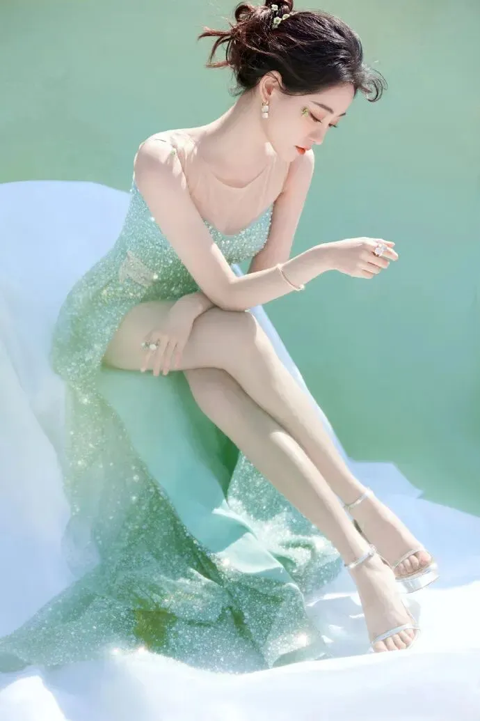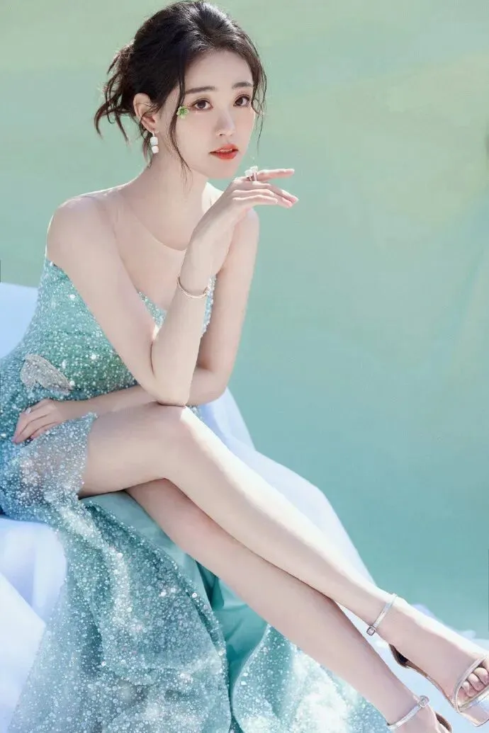 祝绪丹清新美腿写真 ,好像一朵绿色的兰花