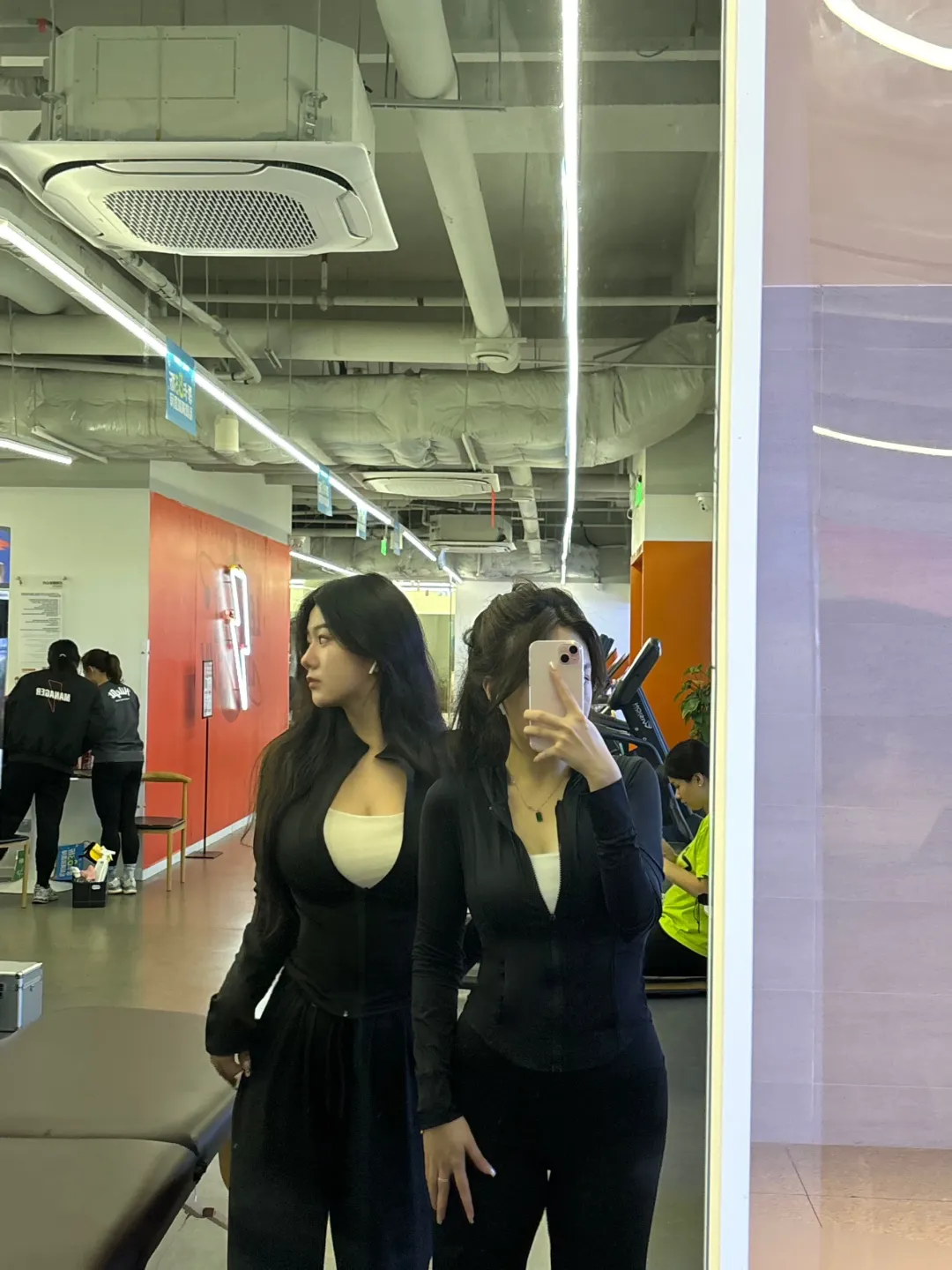 手机壳的粉色与整体氛围和谐,墙面的圆形白色小物件作为点缀,让画面多了生活气息。她的姿态自然放松,尽显健身后的轻盈与自信,这样的穿搭既满足运动功能性,又能展现个人风格,优雅又有活力。每一处细节都透着用心,将舒适与美感巧妙融合,恰如其分地诠释了运动穿搭的魅力。