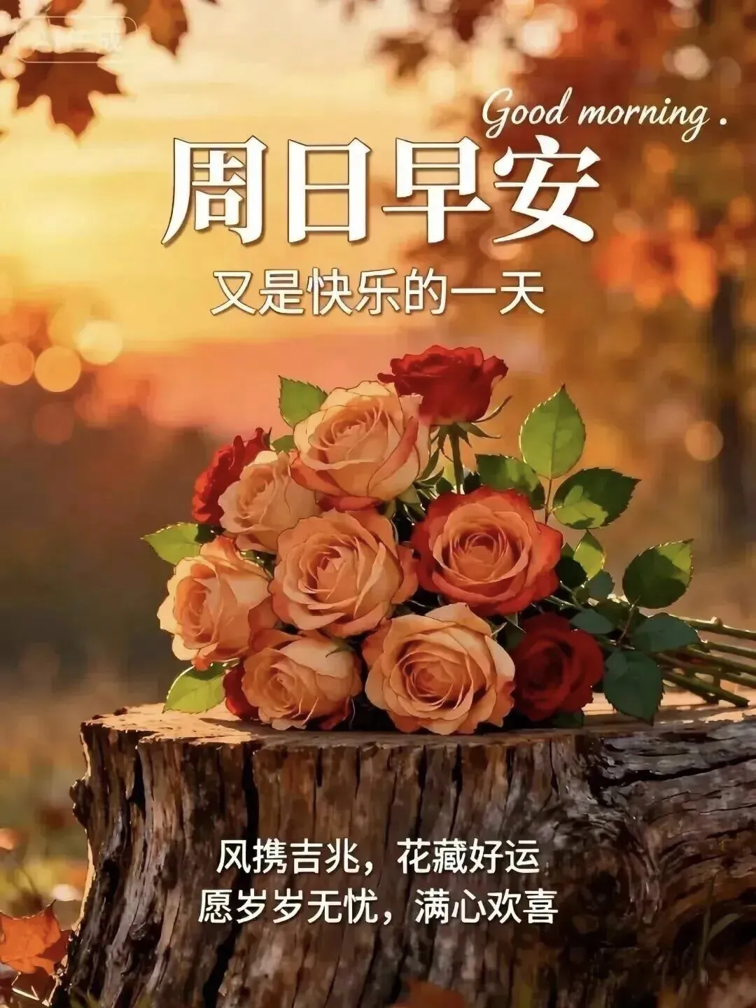 3. 早安呀🌞!周日的阳光格外温柔,空气里满是轻松的味道🍃。给自己泡一杯喜欢的茶,听一首舒缓的歌🎶,让所有烦恼都随风飘散,愿你今天无忧无虑,笑容比阳光还灿烂😊!
