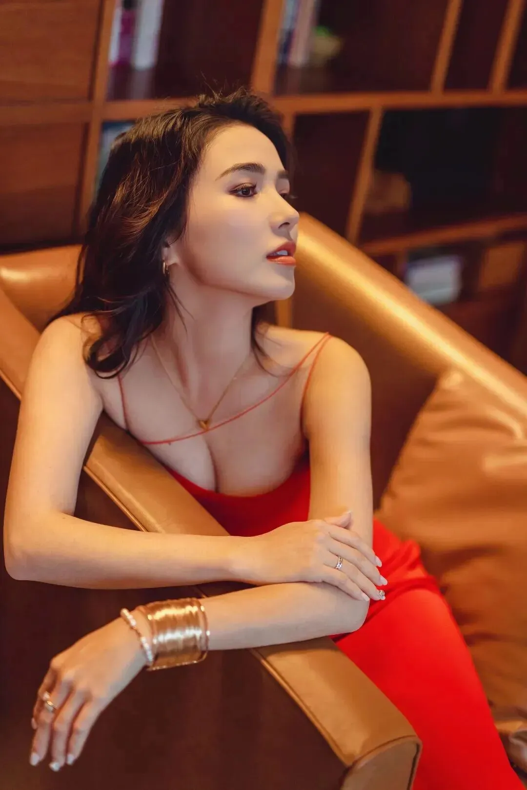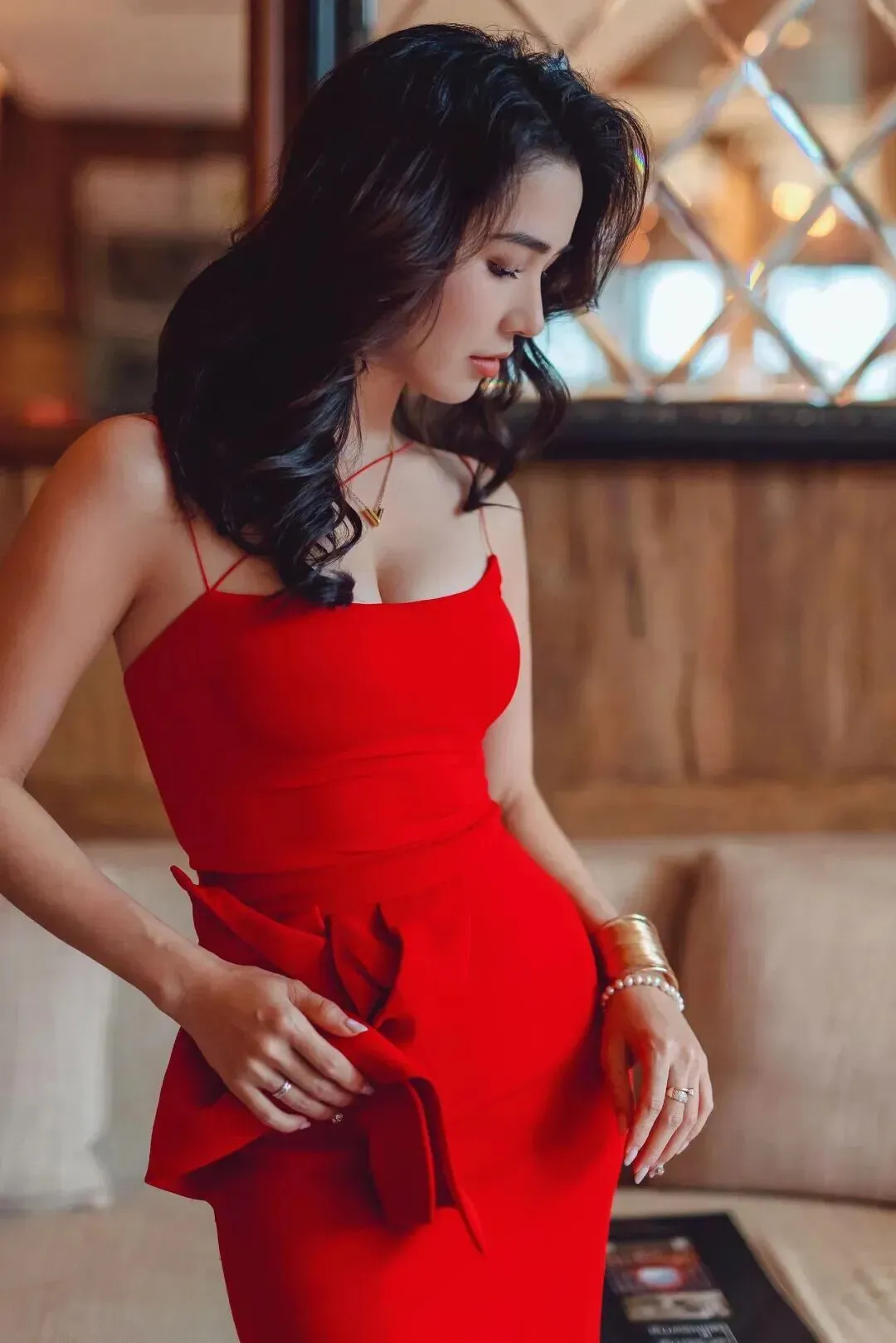 性感模特:美女写真|卷发红唇,红裙定格优雅